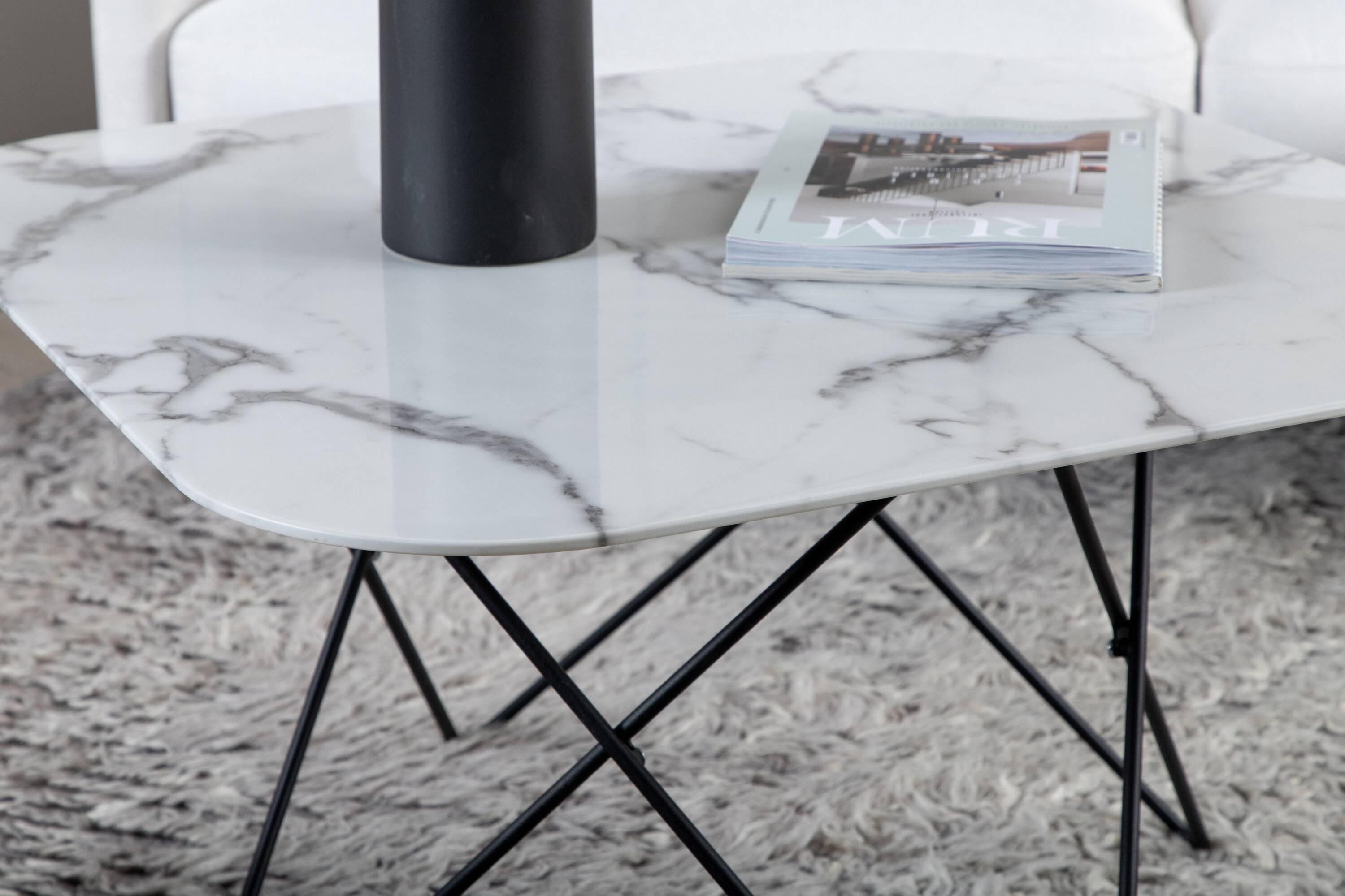 - De tafel is rechthoekig met licht afgeronde hoeken voor een zachtere uitstraling.