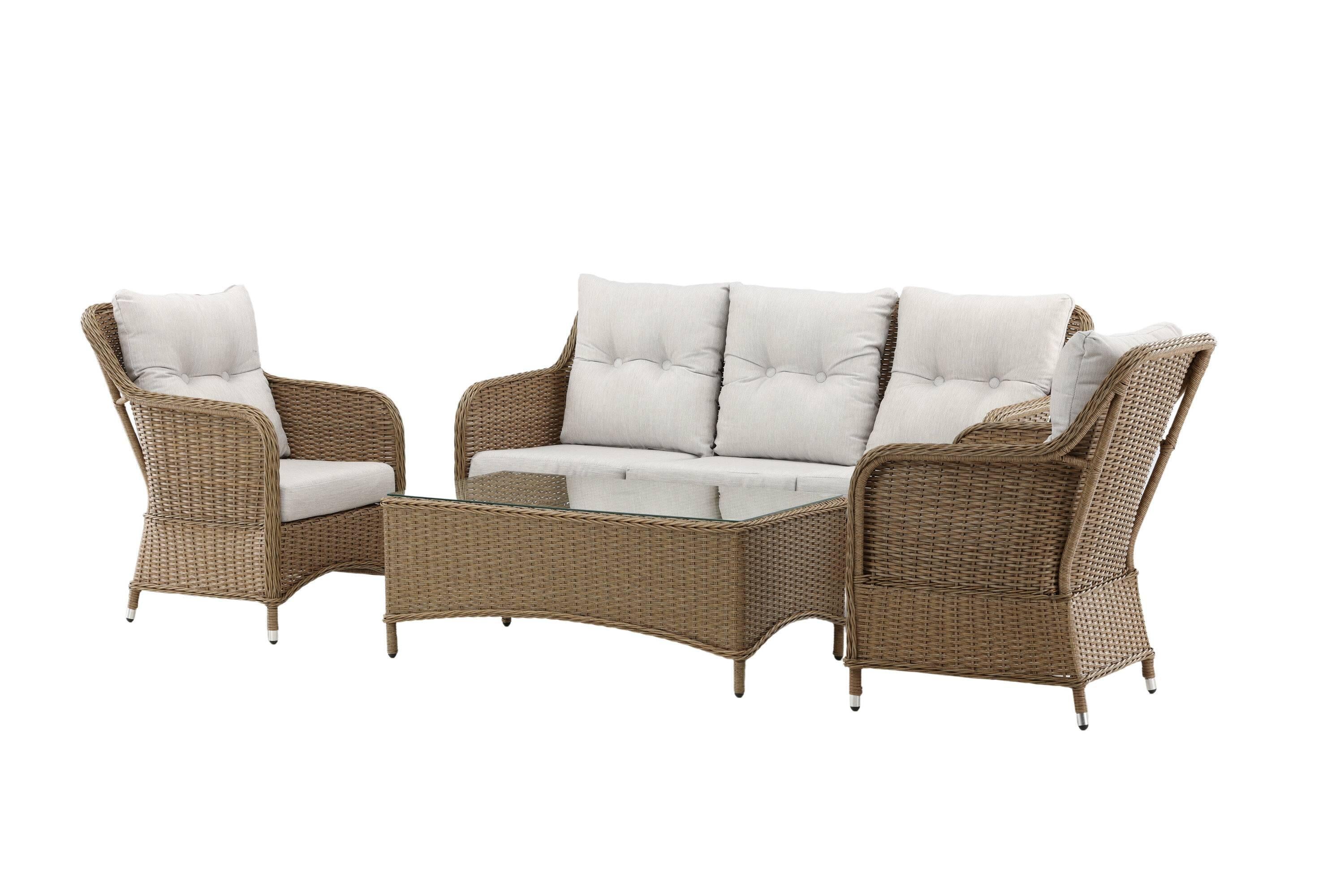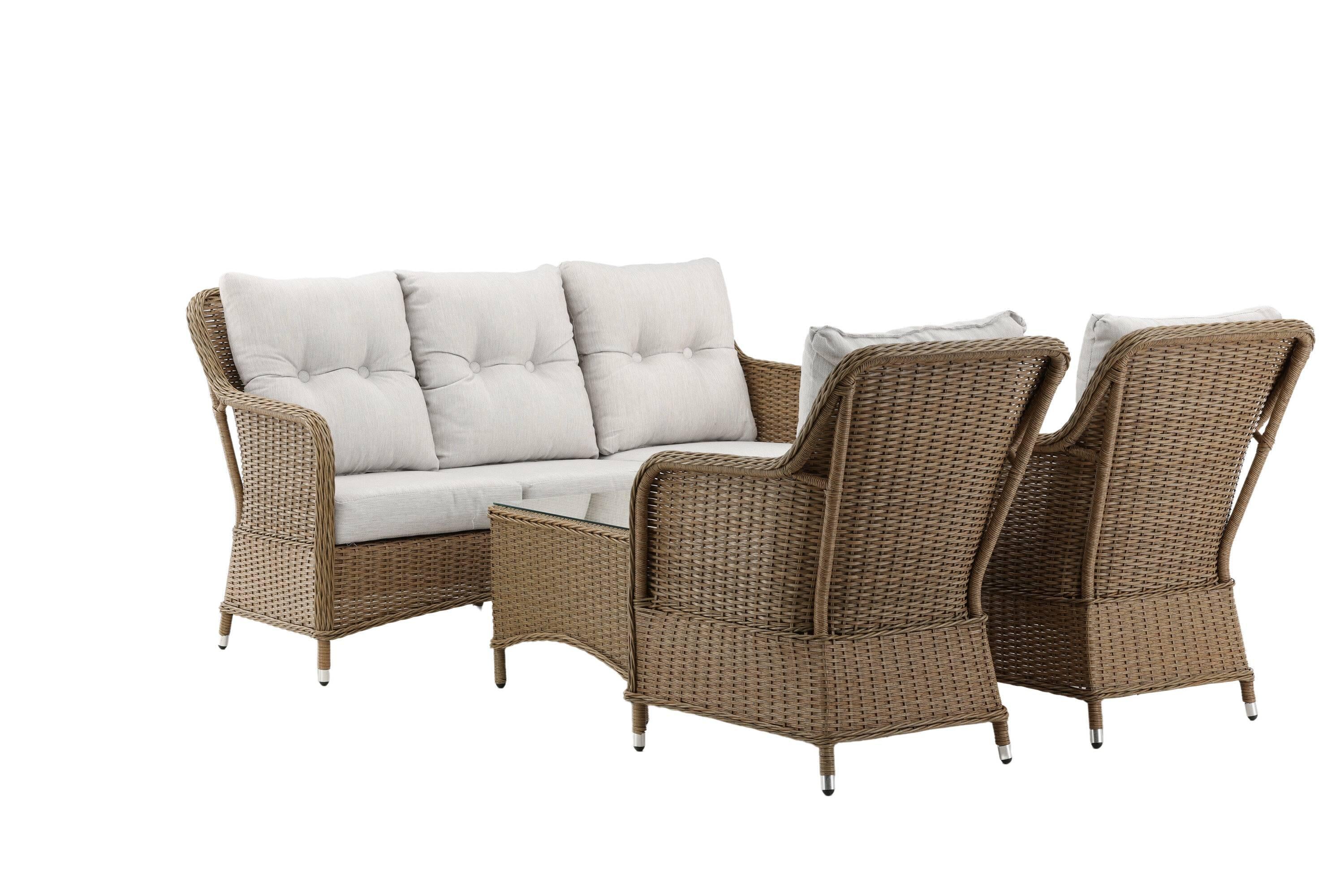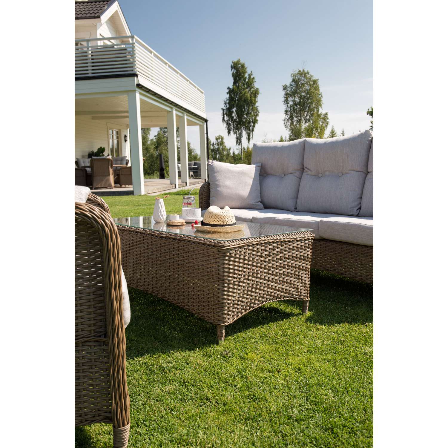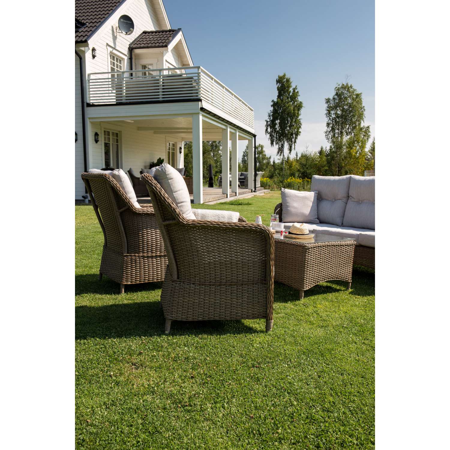 - Gemaakt van natuurlijk gekleurd kunstrotan met een aluminium frame – stijlvol en duurzaam! Weerbestendig en perfect voor het Scandinavische klimaat.