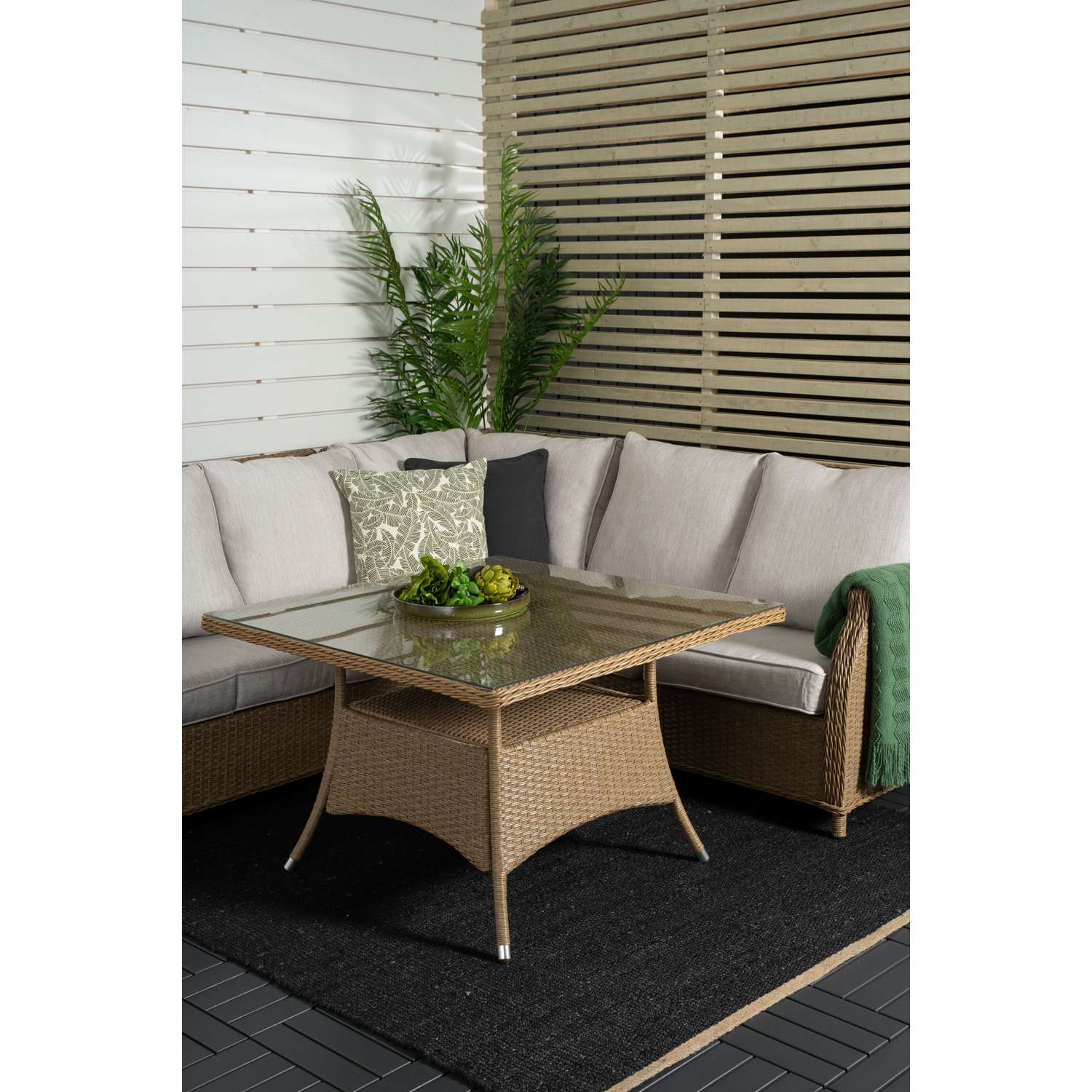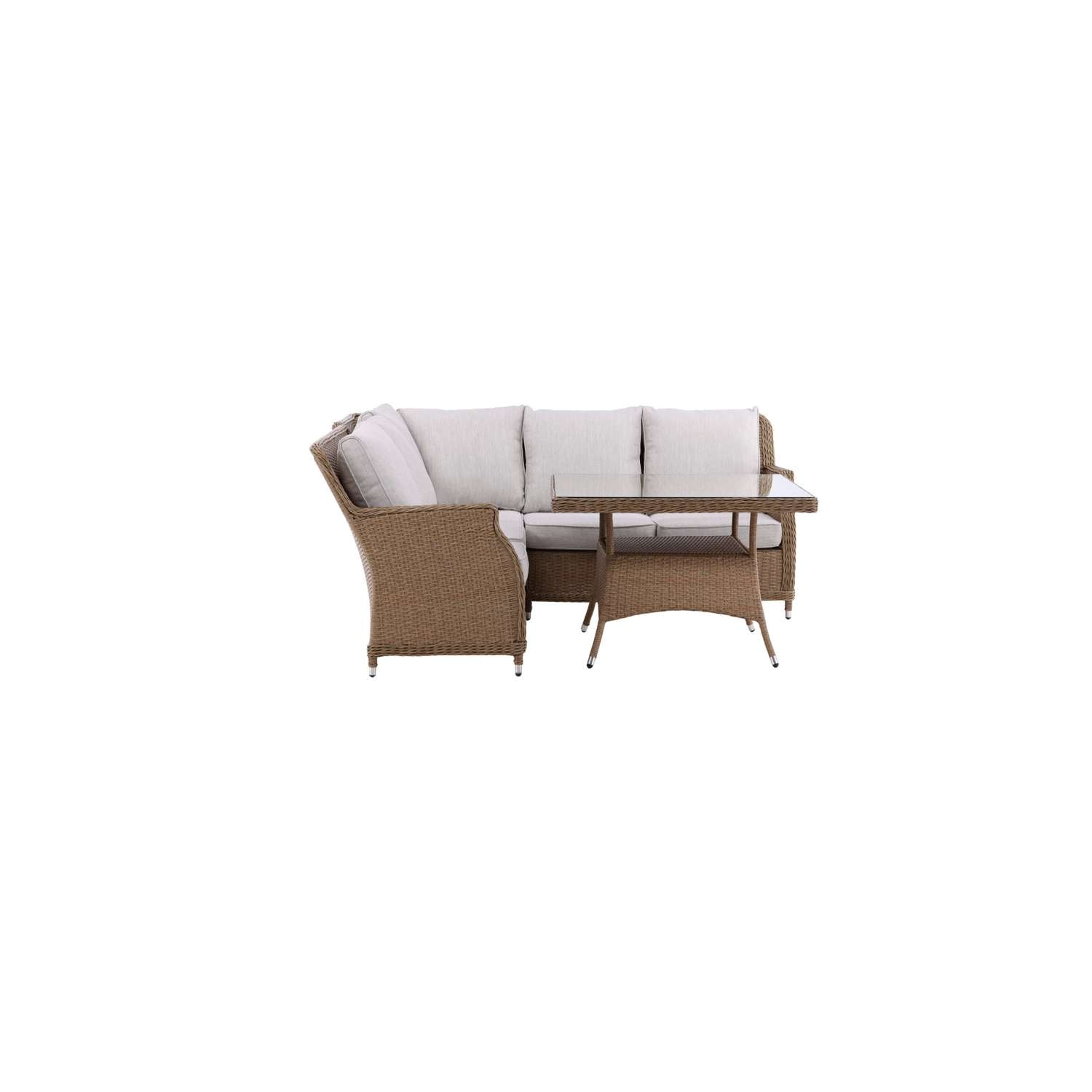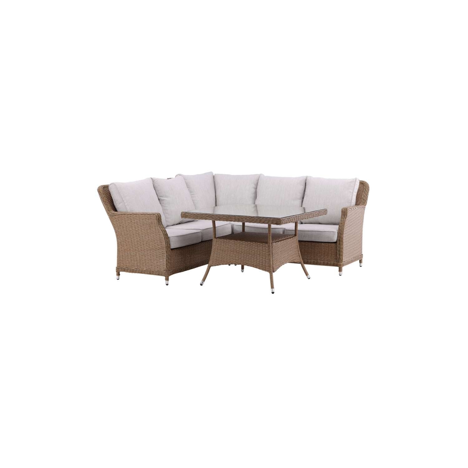 - De sofagroep bestaat uit een hoekbank met vier zitplaatsen en een hoekdeel