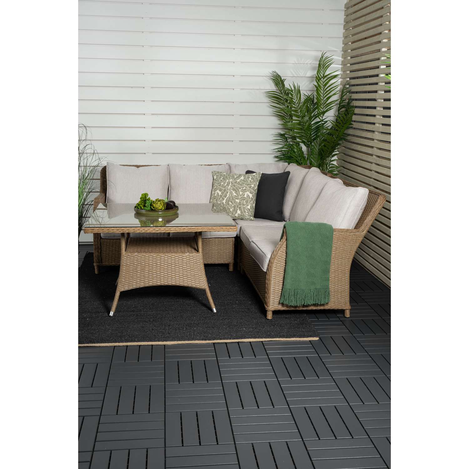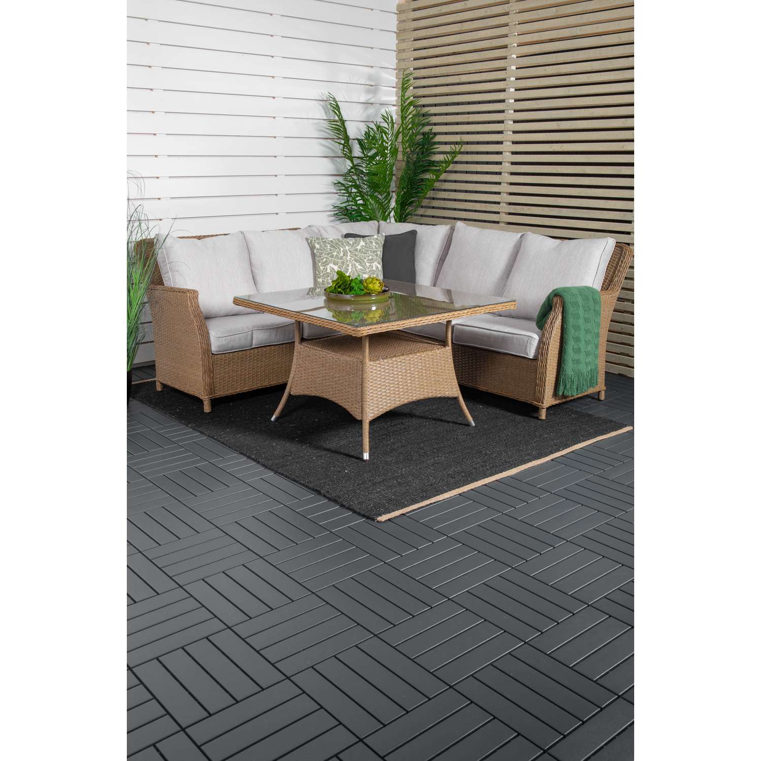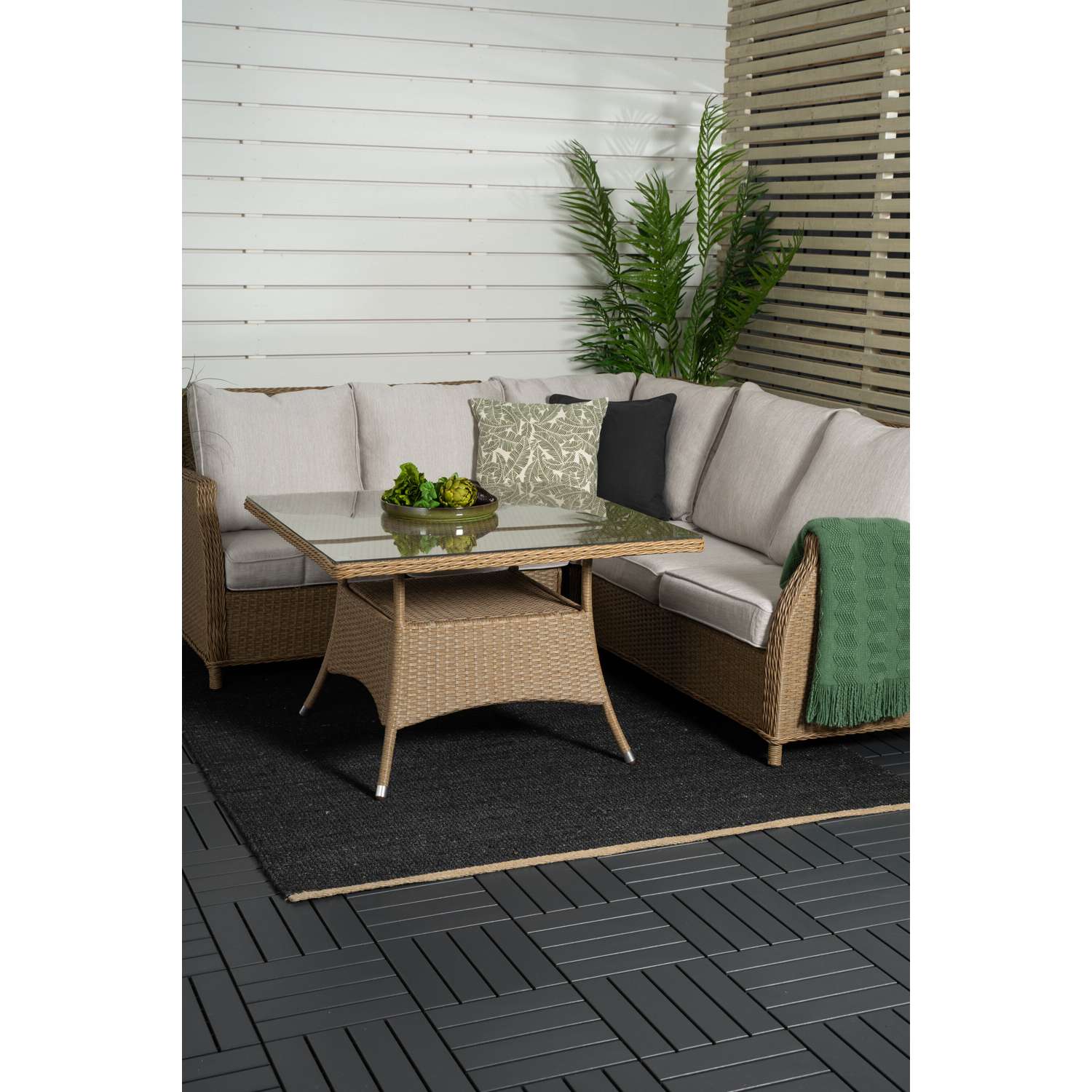 - De sofagroep bestaat uit een hoekbank met vier zitplaatsen en een hoekdeel