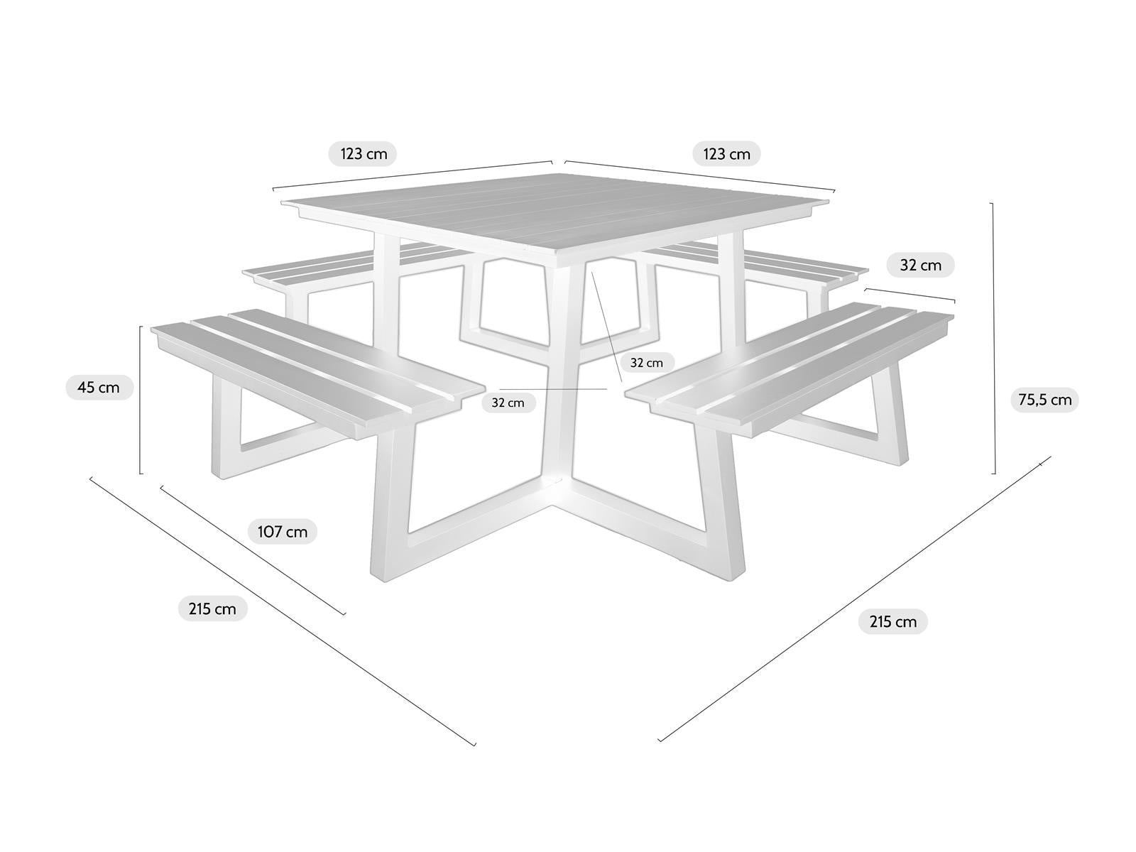 | Maat | 215 x 215 x 75 cm |