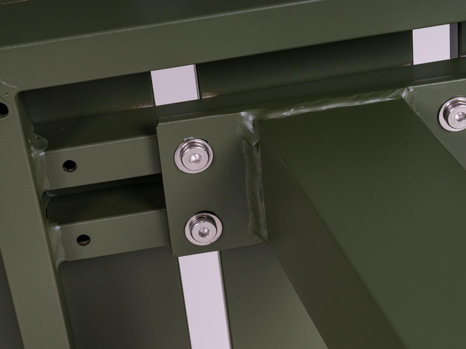 Deze olijfgroensdfgecoate vierkante aluminium picknicktafel is een designtopper waarbij modieuze vormgeving, betaalbaarheid en comfort samengaan. De onderhoudsarme tafel heeft een elegante en makkelijke instap waarbij je je benen niet hoeft op te tillen. Door zijn lichtgewicht is deze vierkante tafel eenvoudig te verplaatsen in je kantoor, tuin of op je dakterras. Waarom worden wij zo blij van deze moderne olijfgroene picknicktafel?