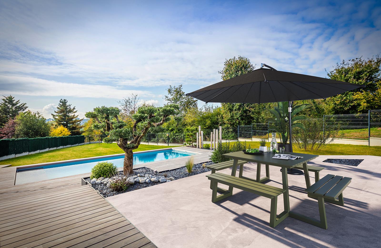 vierkante aluminium picknicktafel Dex 215 cm olijfgroen