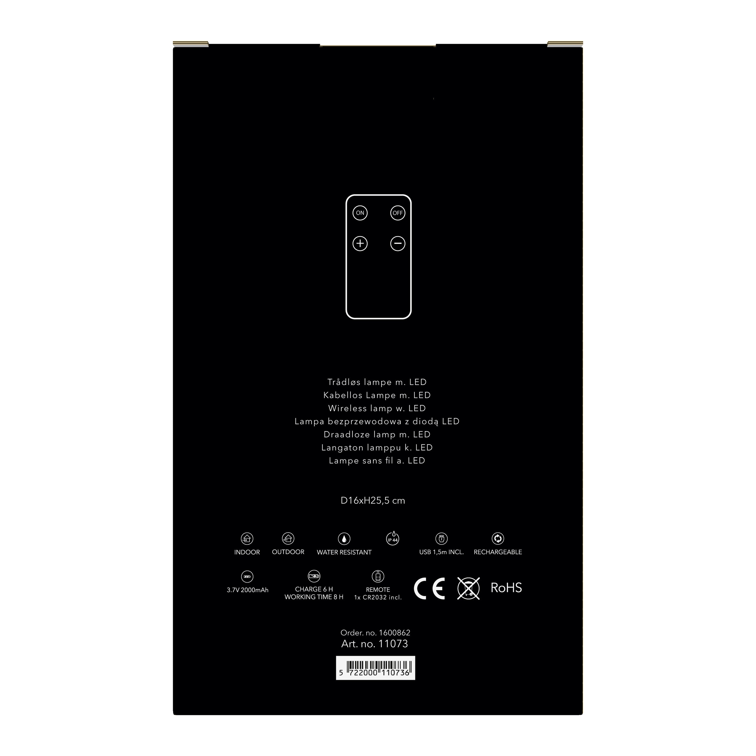 - Werkt met afstandsbediening en is oplaadbaar