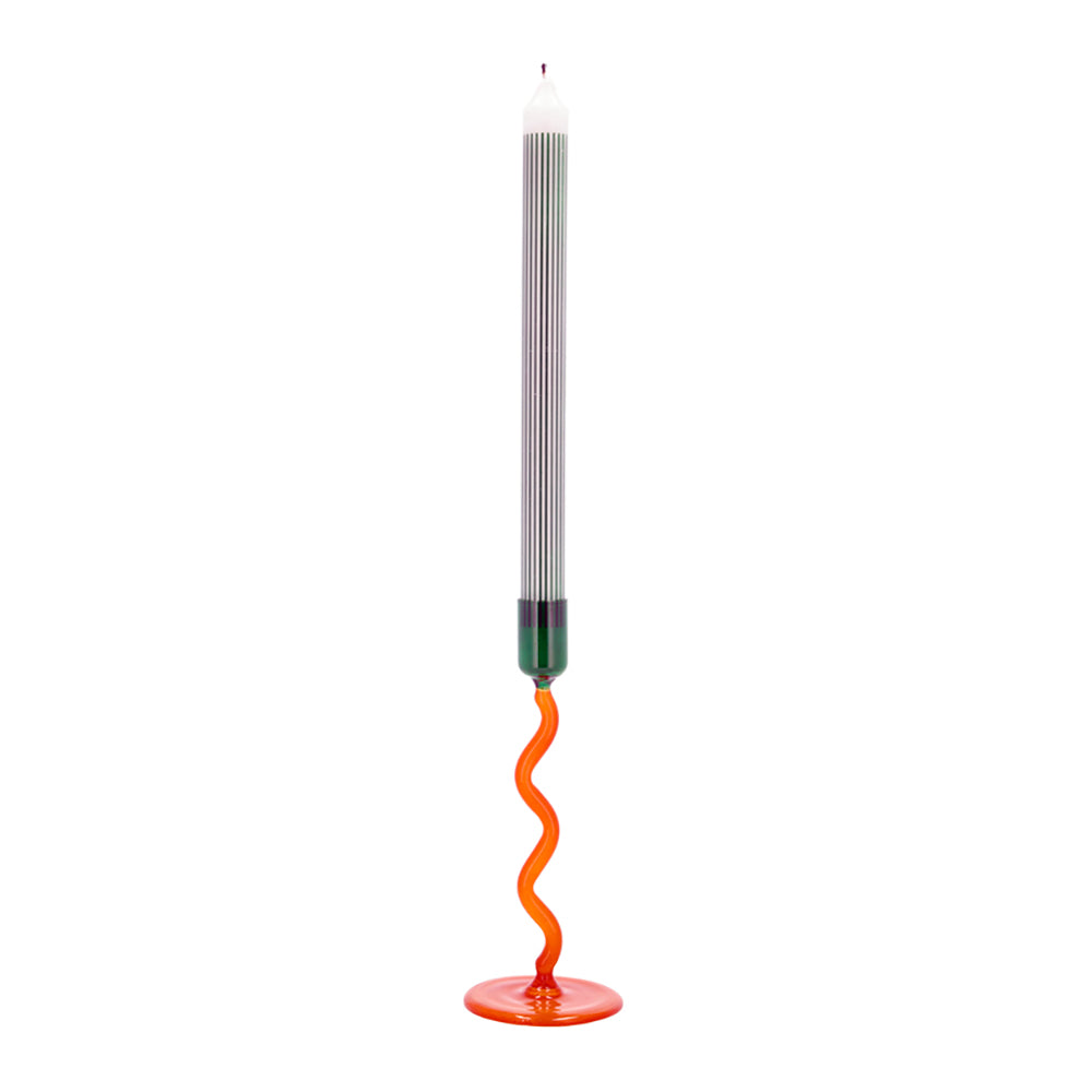 Villa Collection Styles Glazen Kandelaar Spiral - Groen / Oranje