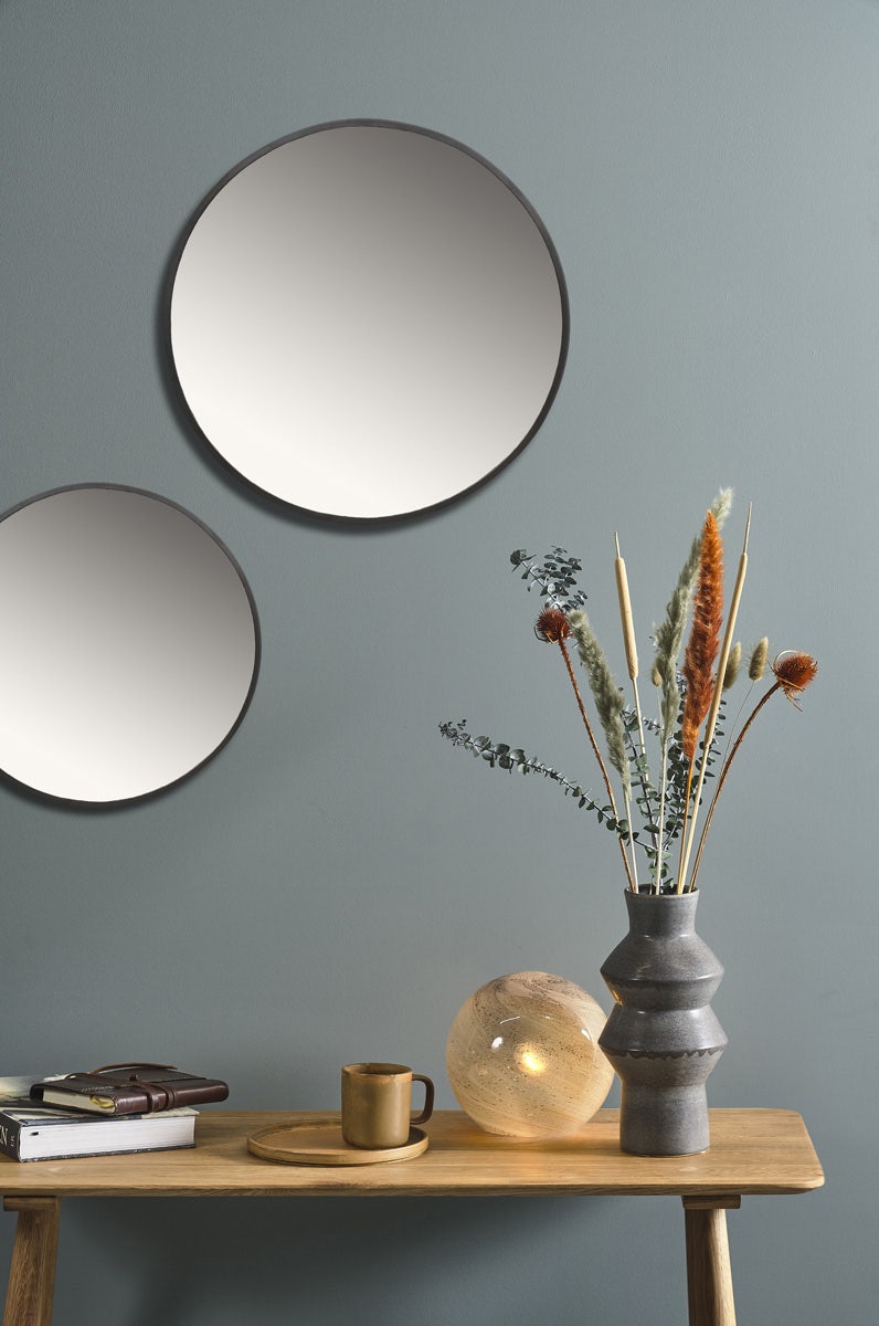 De Vardo wandspiegel heeft een diameter van 50 cm en een dikte van 1,2 cm. Het frame is gemaakt van zwart metaal en heeft een ronde vorm. Deze ronde spiegel is zowel functioneel als decoratief. Hang de spiegel op boven een kastje in de hal of gebruik hem als badkamerspiegel. Combineer met meerdere ronde spiegels in verschillende afmetingen om een decoratieve en opvallende muur te creëren.