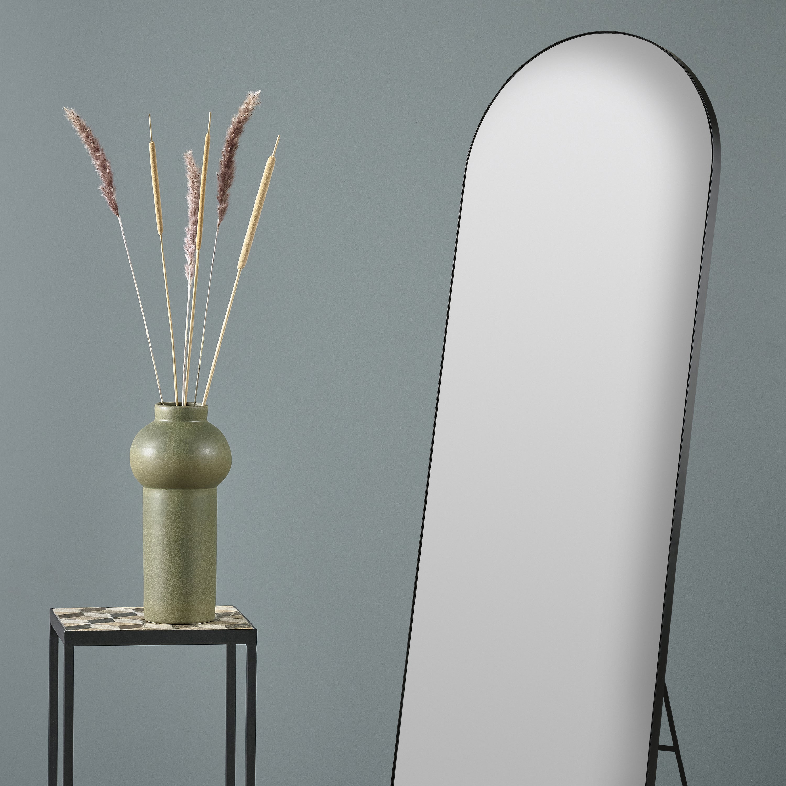 Het frame van de Vasto spiegel is gemaakt van zwart metaal, wat de spiegel een strakke en moderne uitstraling geeft. De spiegel is 55 cm breed en 170 cm hoog. Hierdoor kan je hem perfect als passpiegel gebruiken in de hal of op de slaapkamer. De Vasto spiegel heeft een standaard zodat je hem op de grond kan zetten, maar je kan de standaard ook verwijderen en de spiegel aan de muur hangen. Aan de achterzijde zitten 4 haken zodat je de spiegel zowel verticaal als horizontaal kan ophangen.