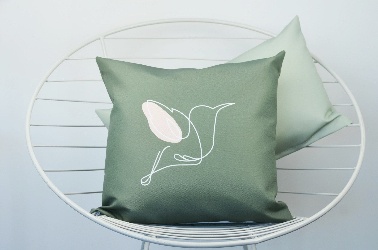 Villa Madelief buitenkussen Vogel lijntekening (40x40cm)