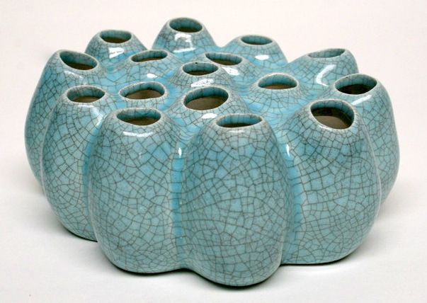 In de lijn Pompom een leuke modern gekleurde licht blauwe vaas met vele speelse openingen om zo een kleurrijk geheel te creëren. Door de vormgeving en frisse kleur is de vaas een aanvulling voor elk interieur. De keramiek vazen zijn gemaakt van klei (het woord keramiek betekend letterlijk "gebakken aarde") welke vervolgens geglazuurd zijn. De vazen worden op een vakkundige, traditionele manier geproduceerd waardoor er kleine kleur en maatverschillen kunnen ontstaan. Geen enkele pot is gelijk.’