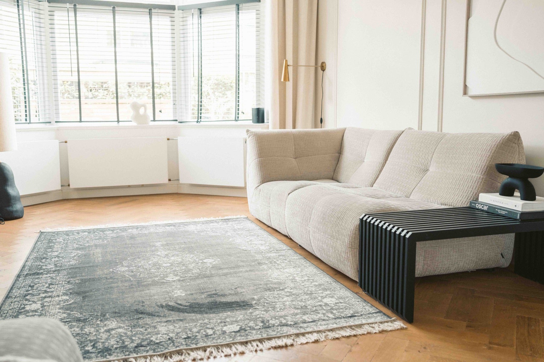 Vintage vloerkleed Ornament antraciet met franjes 195x300cm