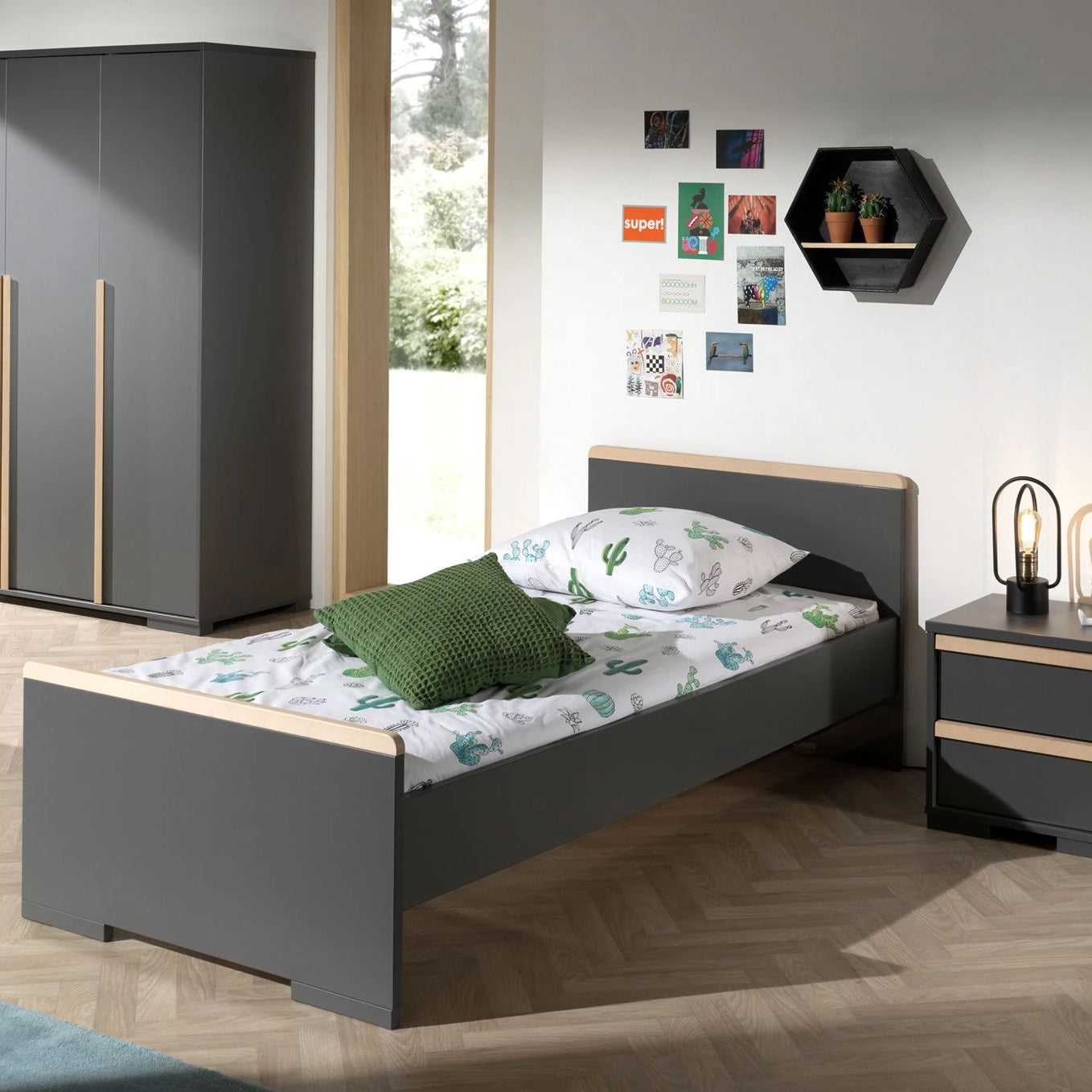 - De lange verticale handgrepen van beukenhout zorgen voor een warm accent in de kinderkamer