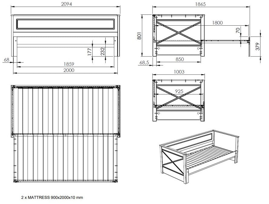 | Maat | B100, D209, H80 cm |