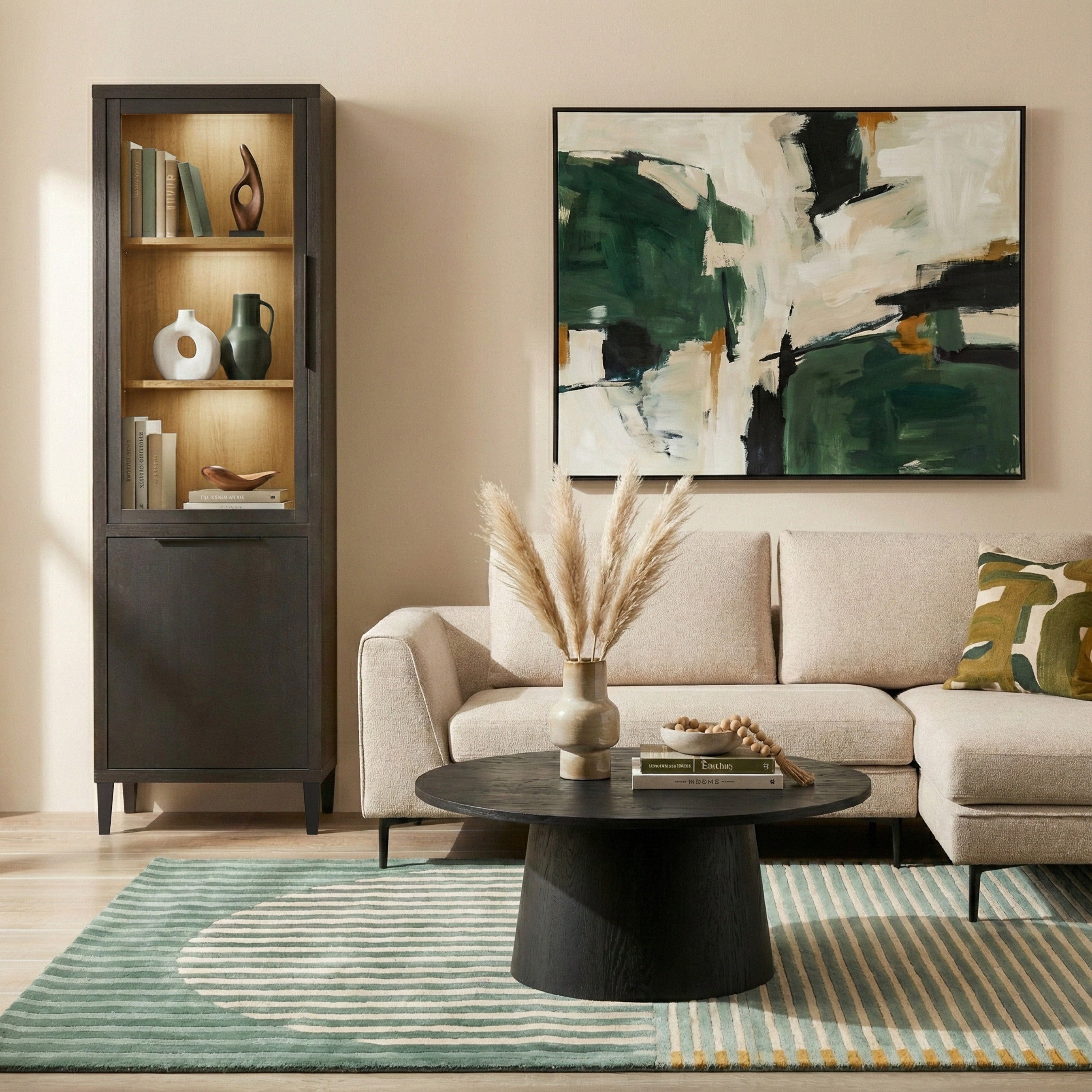 Vitrinekast Zwanenburg Antraciet|Hout - Naturel|Zwart MDF