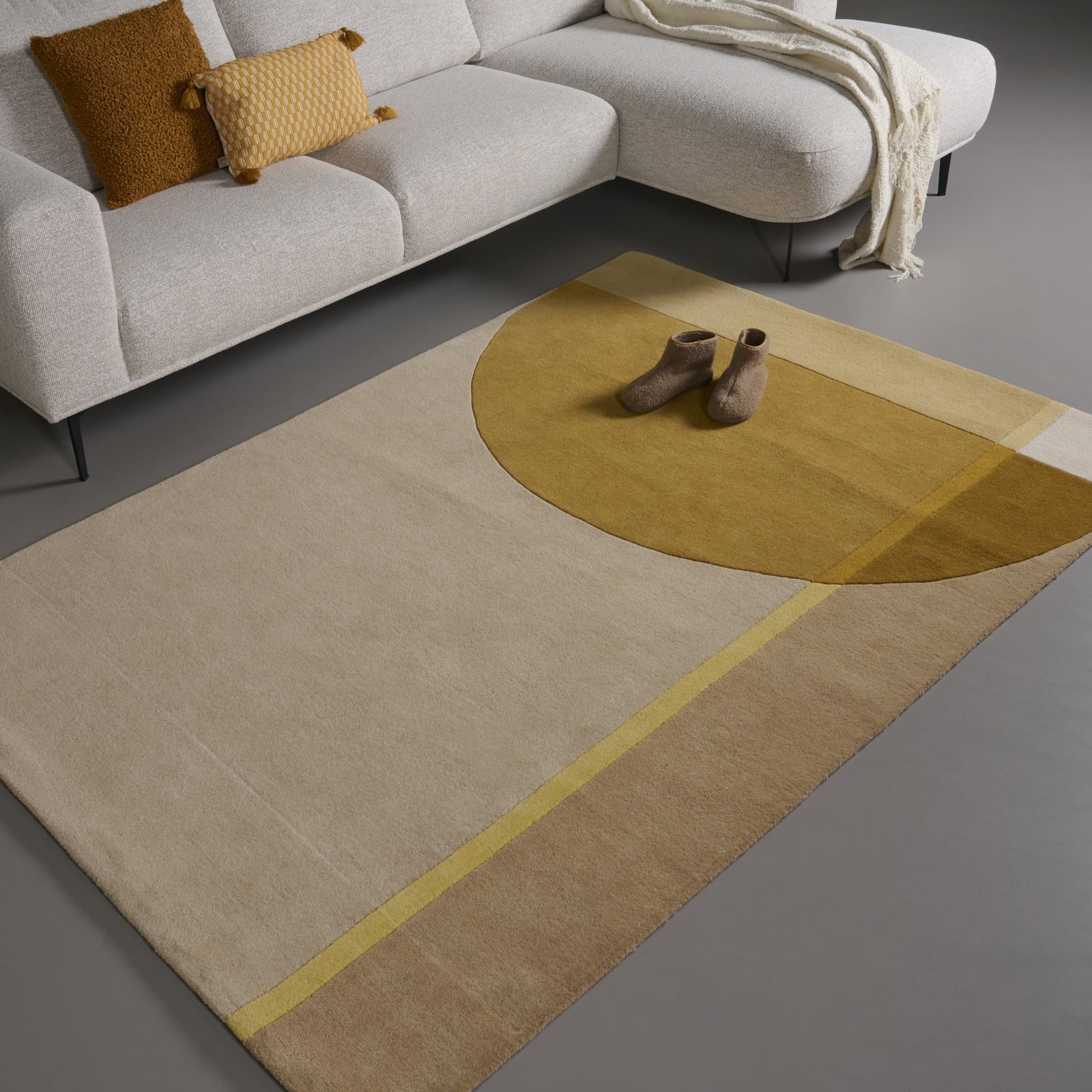 Vloerkleed 200 Pam - Beige|Geel|Goud|Oker - 100% Wol