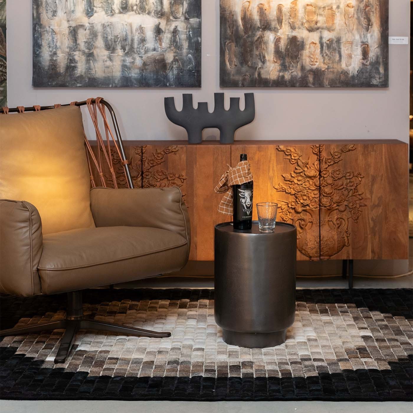- Met zijn royale afmetingen brengt het diepte en dynamiek in grote woonkamers, eetkamers of slaapkamers.