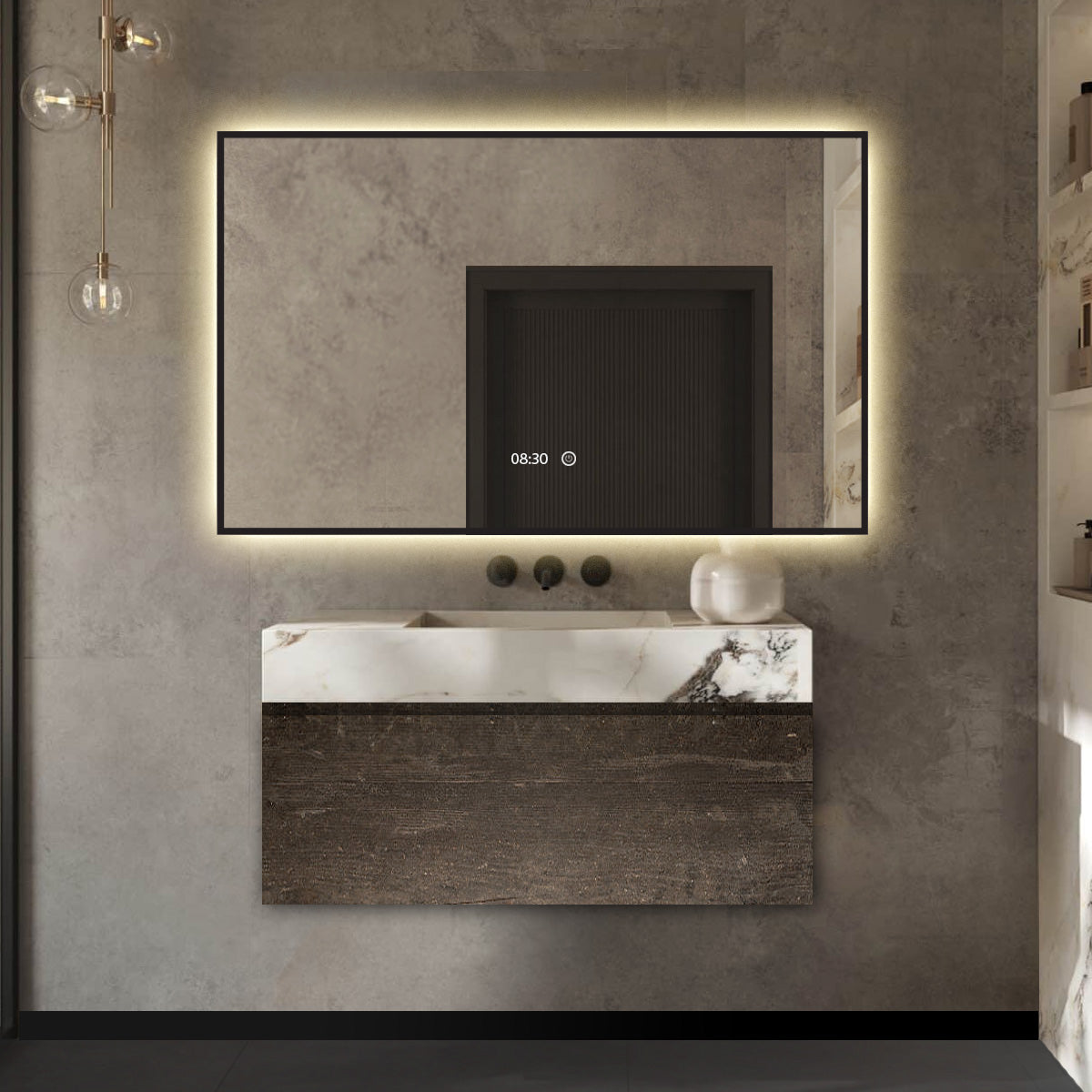 Vtw Living - Badkamerspiegel met Verlichting Rand Zwart - 100 x 60 cm