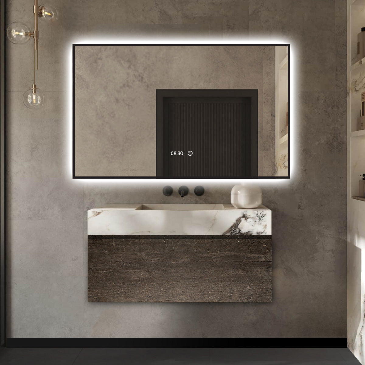 Vtw Living - Badkamerspiegel met Verlichting Rand Zwart - 80 x 60 cm