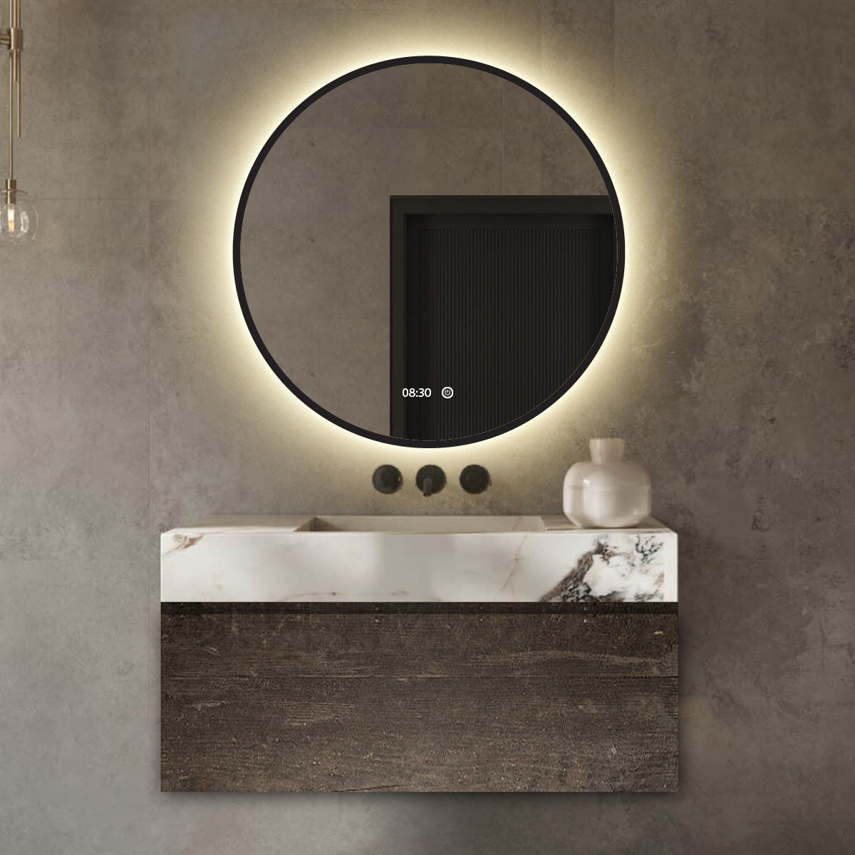 Vtw Living - Badkamerspiegel Rond 80 cm Zwart Spiegel met Verlichting