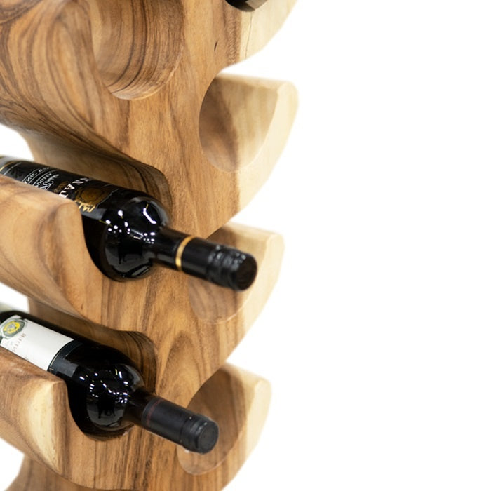 Dit royale wijnrek is gemaakt van hoogwaardig teakhout en suarhout en heeft een indrukwekkende hoogte van 151 cm. Het XXL-formaat en het verticale ontwerp maken het tot een opvallend meubelstuk dat zowel functioneel als decoratief is.