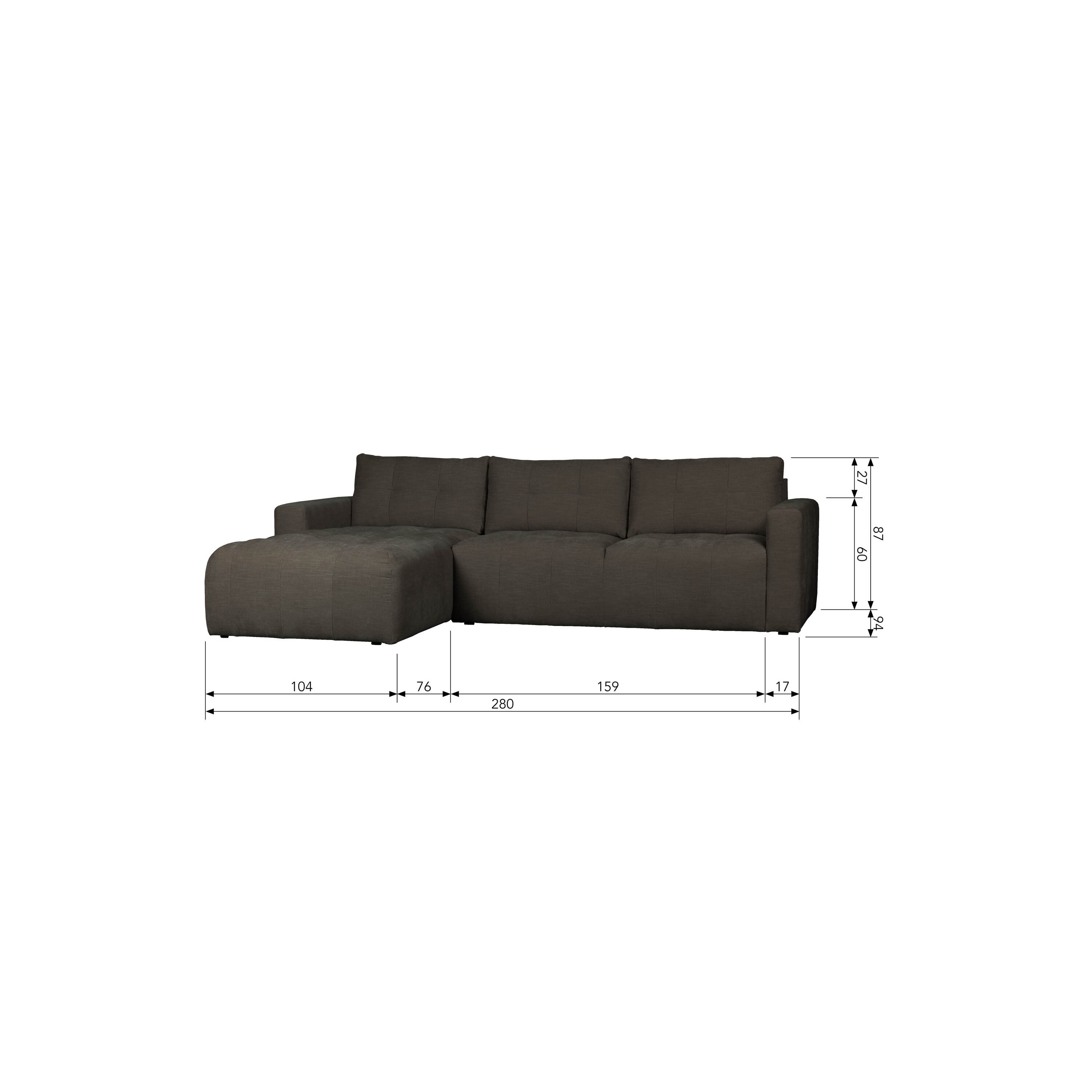 Wie op zoek is naar een hoog zitcomfort en een eyecatcher in de zithoek is bij Bar aan het juiste adres. De Bar chaise longue is met zijn robuuste design een waar rustpunt in ieder interieur. Bar is bekleed met een geweven stof met een zachte grip. De stof is gemaakt van 100% polyester en heeft een Martindale van 90.000, wat het geschikt maakt voor zeer intensief gebruik. De stof heeft een gewassen look die stoer en relaxt oogt. De vergrijsde antracietkleur voegt zich gemakkelijk in diverse interieurstijlen.