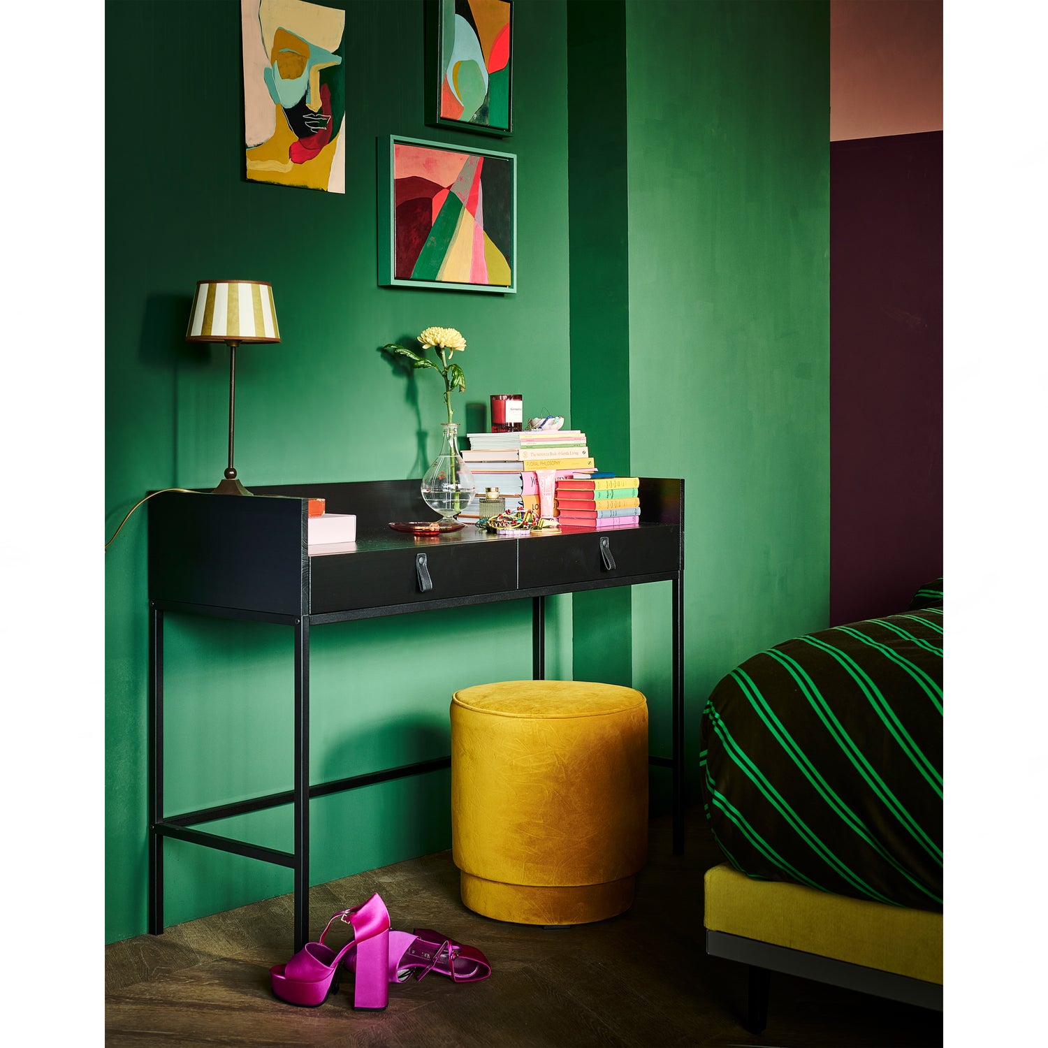 Bookazine is een sfeervol, modern bureau uit de collectie van het Nederlandse merk vtwonen. Bookazine is vervaardigd uit grenenhout met een zwarte afwerking. Dit geeft het bureau een stoere uitstraling. De zwart leren handgreepjes in combinatie met het zwart metalen onderstel geven het bureau tevens een modern karakter. Het werkblad biedt genoeg ruimte voor een mooie werkplek.