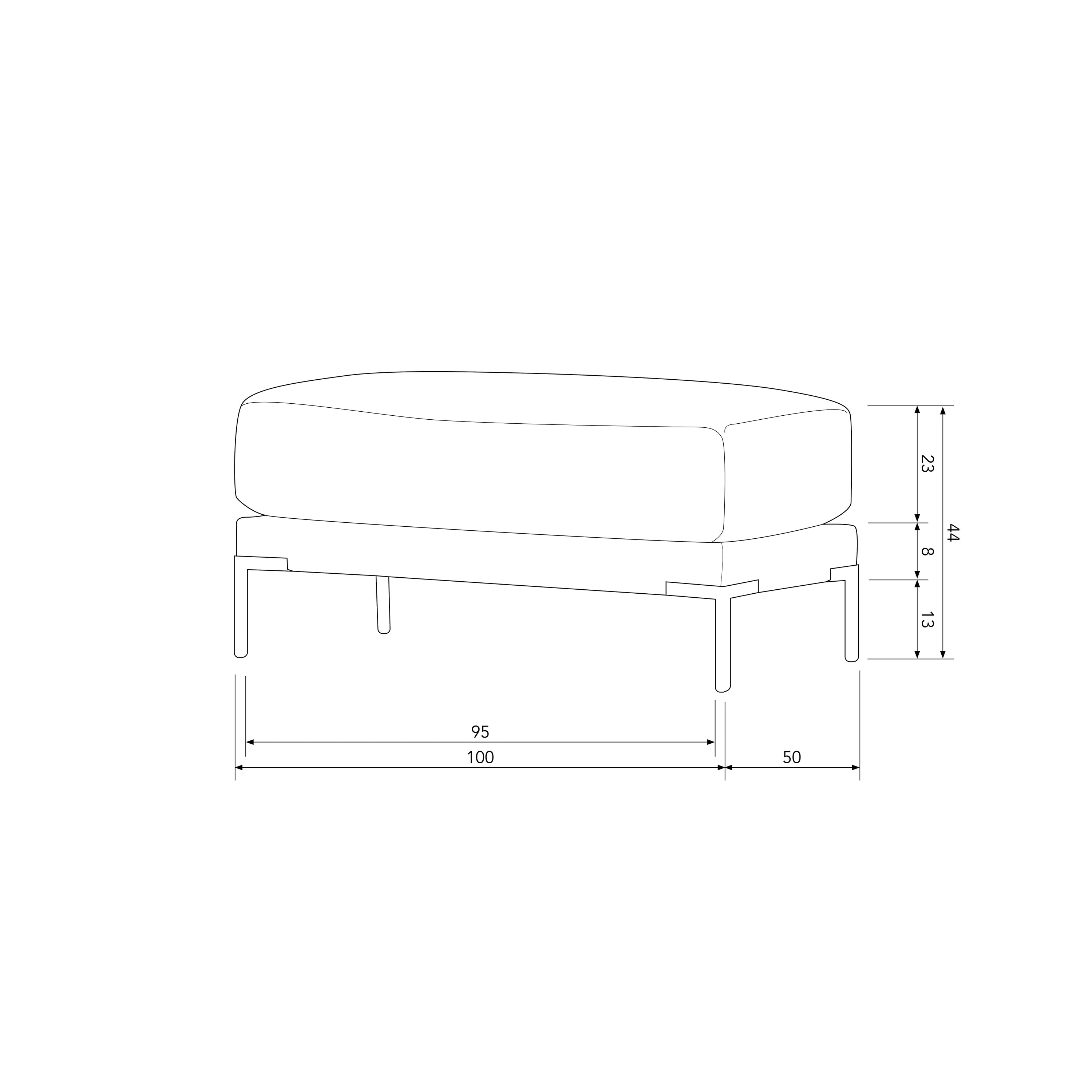 - H 44 cm x B 50 cm x D 100 cm