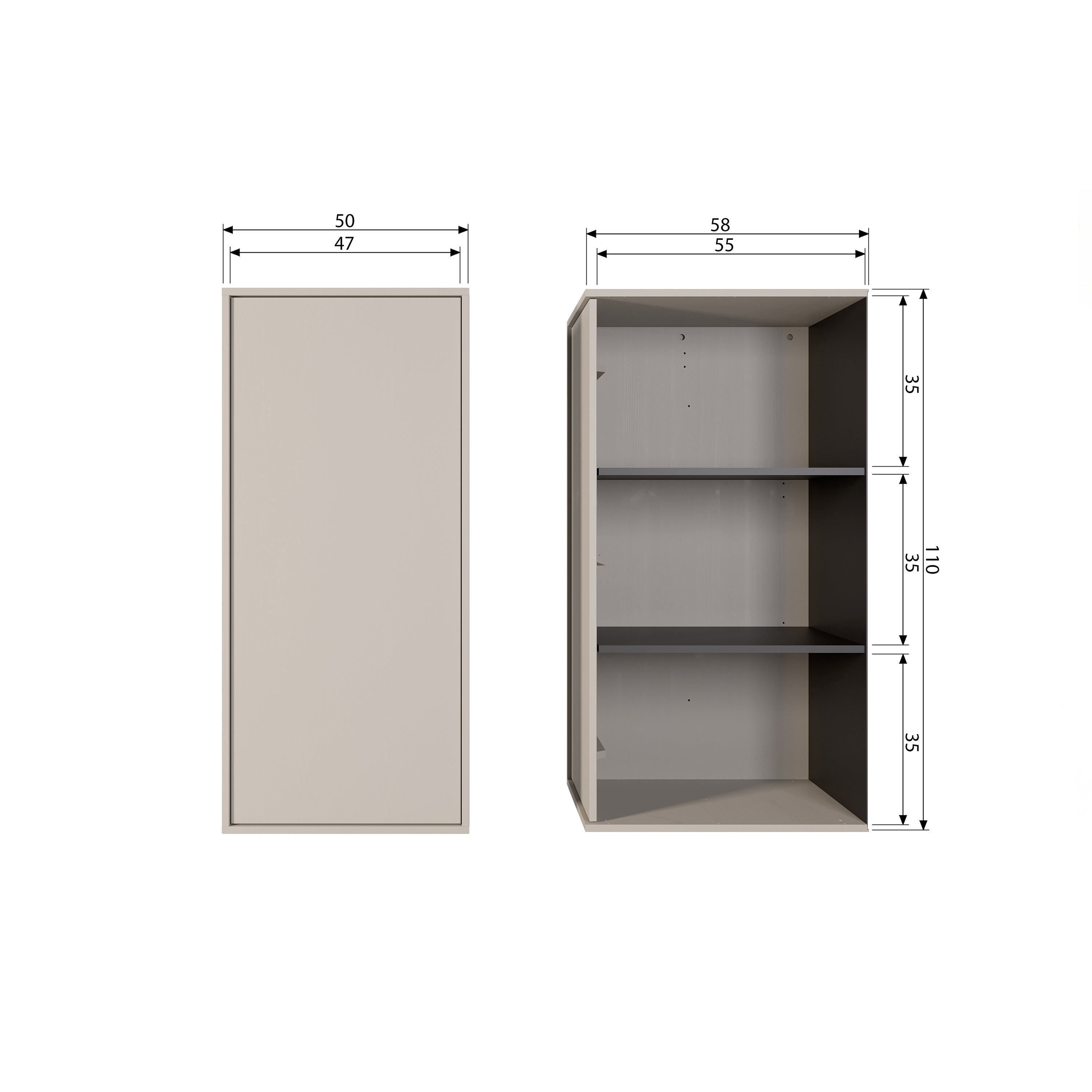 - Dit modulaire kastelement meet H 110 x B 50 x D 58 cm