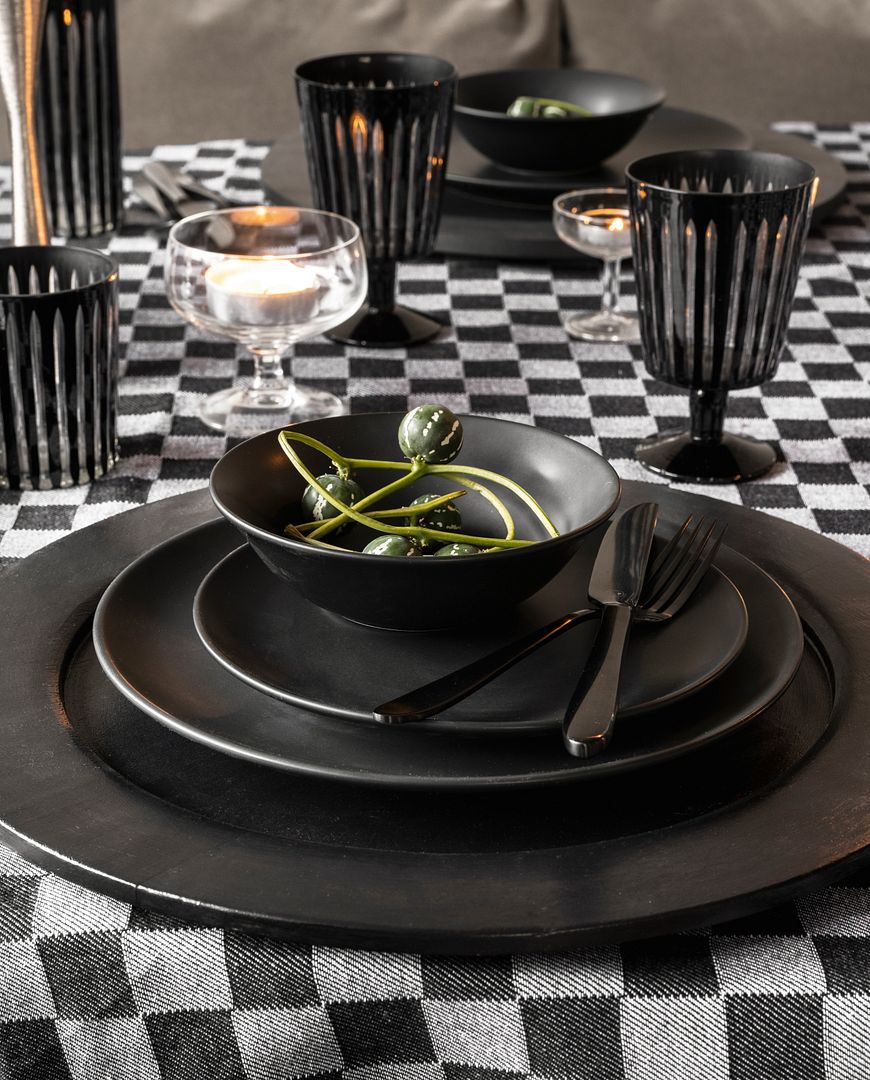 - Met de mat zwarte borden serveer je je gerechtjes in stijl