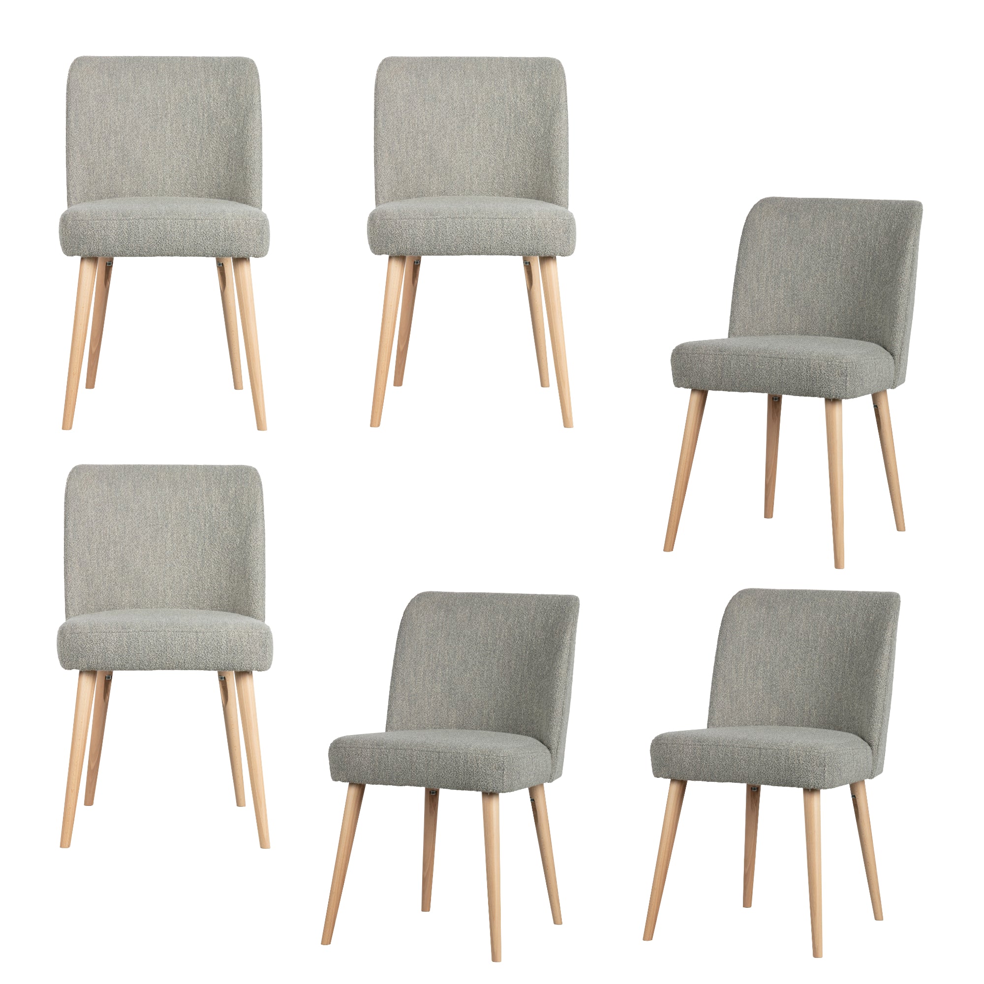 vtwonen Force Eetkamerstoelen - Bouclé - Grijs - Set van 6