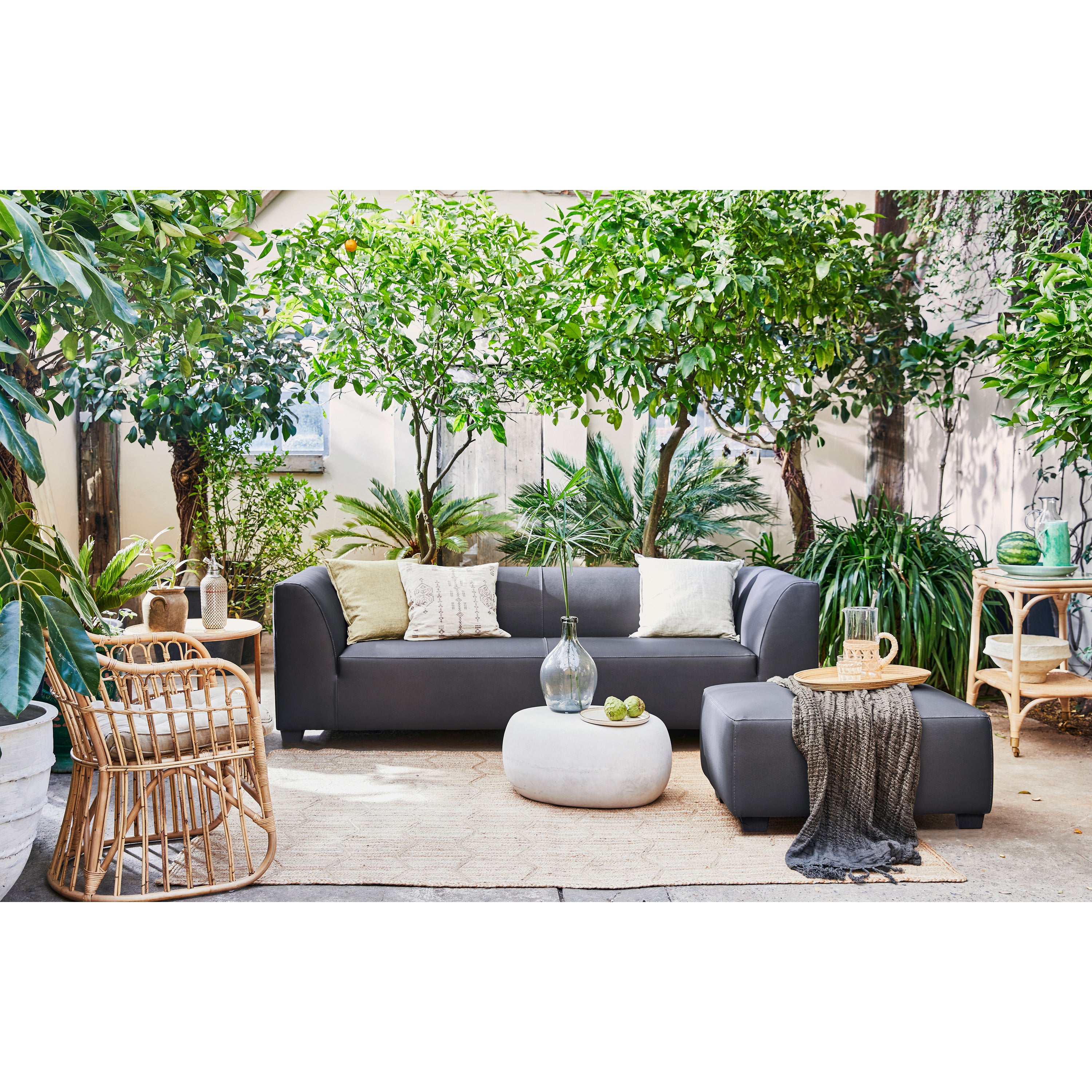 Handig: voor flexibele tuininrichtingen kun je gemakkelijk een royale hoekbank creëren door de Hollandia 2-zits bank aan te schakelen.