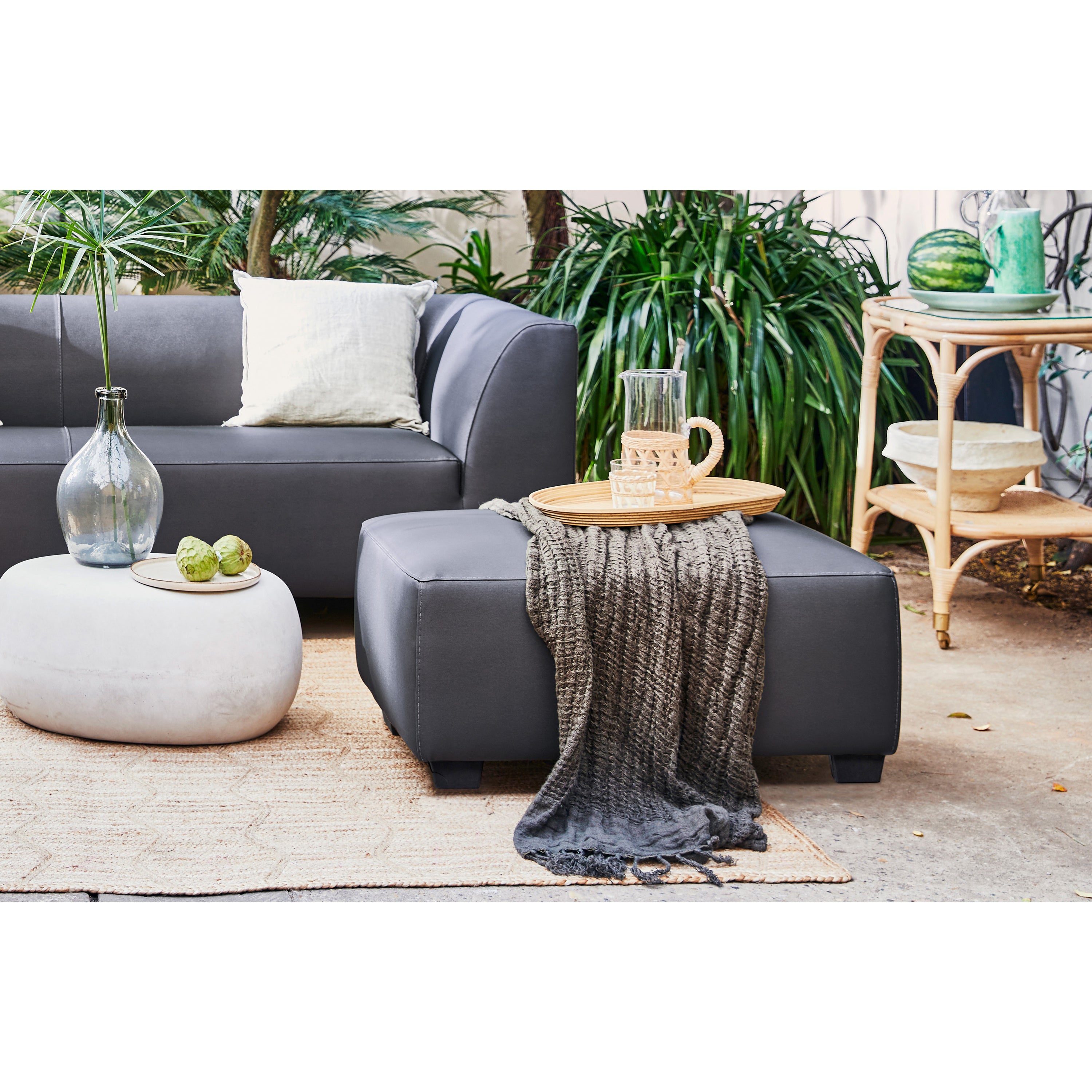 Wie zegt dat design alleen voor binnen is? Met deze stijlvolle hocker van VTWonen breng je direct klasse in jouw outdoor lounge. Deze robuuste hocker is geschikt voor zowel binnen als voor buiten. Deze hocker is uitgevoerd in een modieuze carbon grijze kleur. De Hollandia hocker is onderdeel van de Hollandia collectie, deze bestaat uit een 2-zits bank, 3-zits bank en hocker.