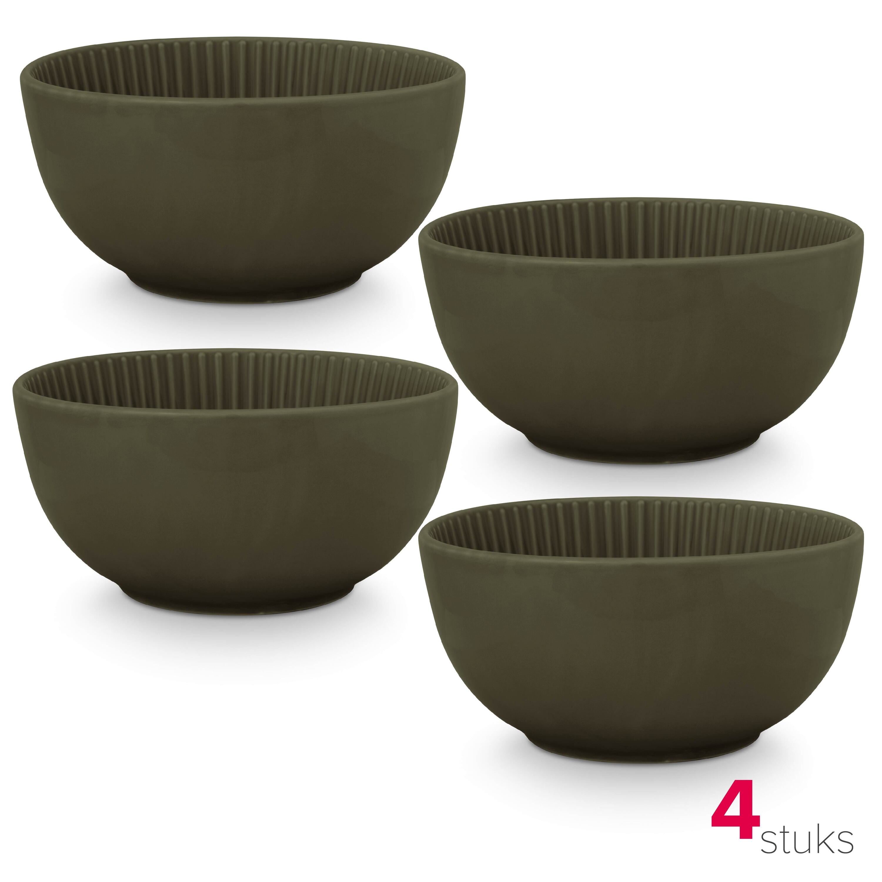 vtwonen Kommen - Set van 4 - Porselein - Groen - Ø15cm