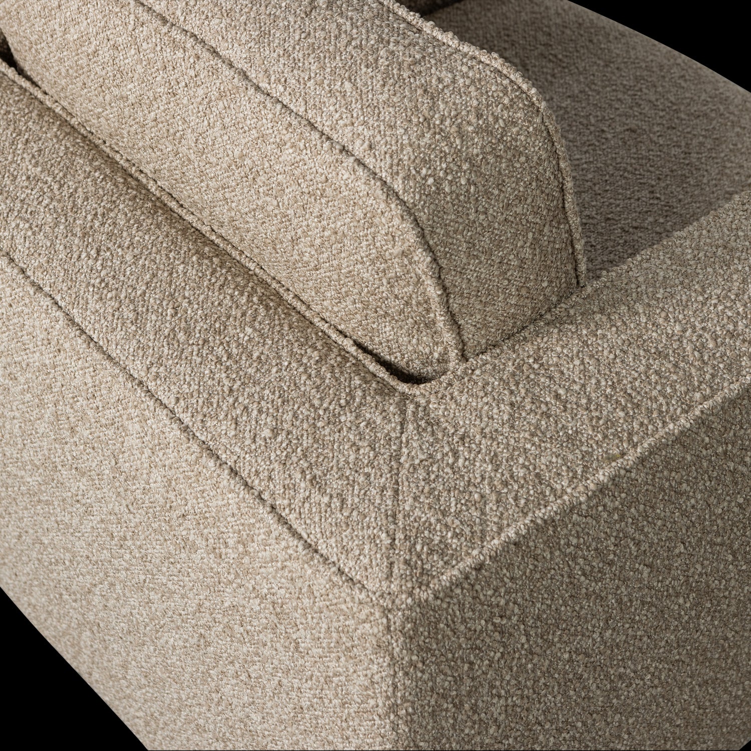 Materiaal Onze Saar bouclé is een luxe stof met een verfijnde textuur. Met een Martindale-score van 100.000 is de stof zeer geschikt voor intensief gebruik. De stof bestaat uit 100% polyester en dankzij de gebruikte weeftechniek heeft de Saar bouclé een volumineuze uitstraling.
