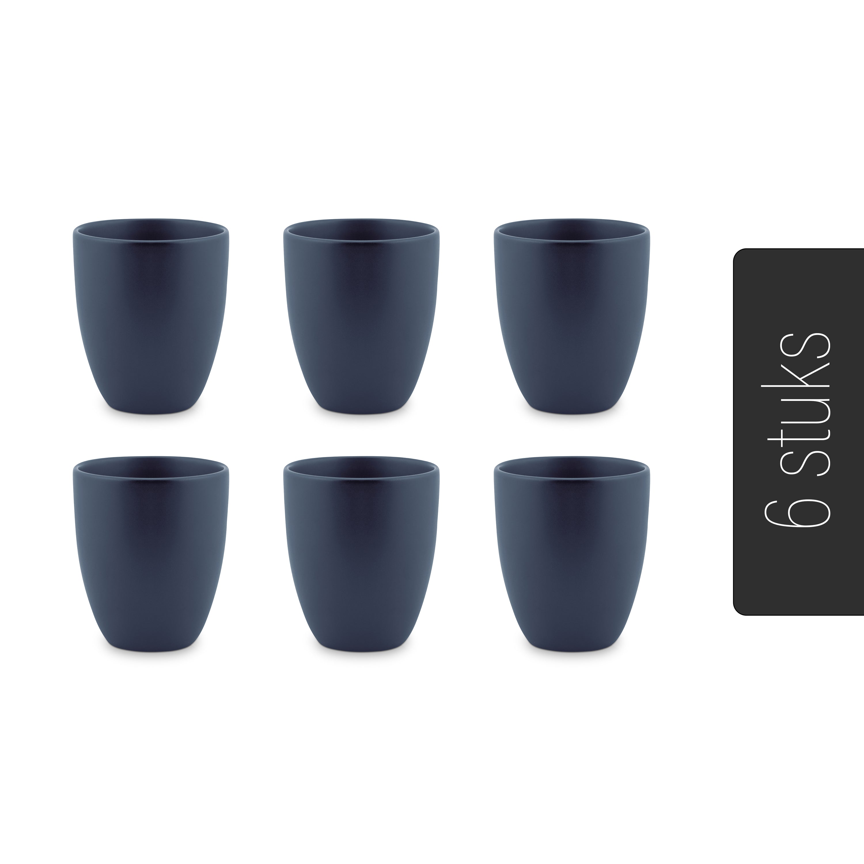 vtwonen Mok zonder Oor - Set van 6 - Mat blauw - Porselein - 250ml