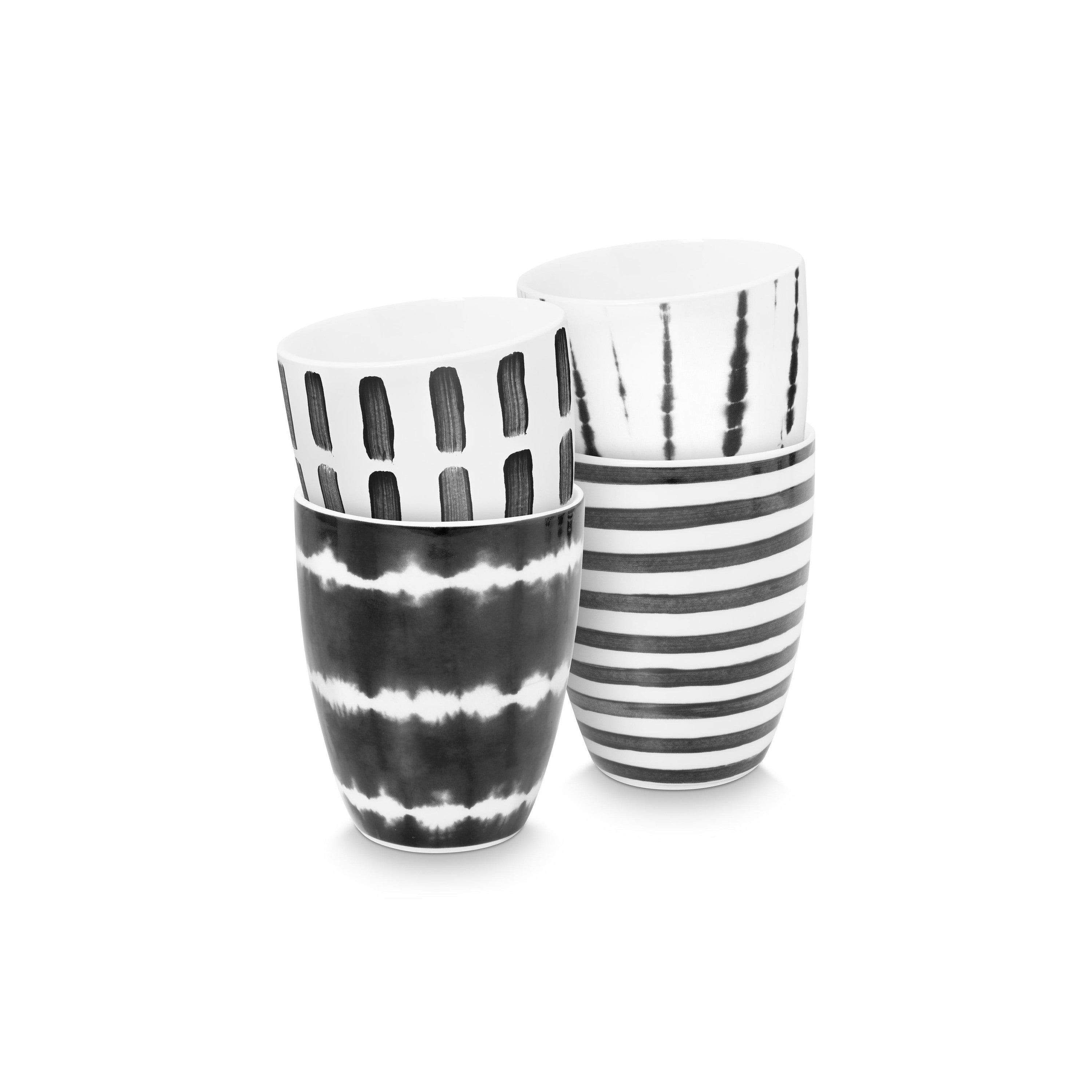 vtwonen - Mokken - Blauw, Wit - Porselein - 400ml - Set van 4