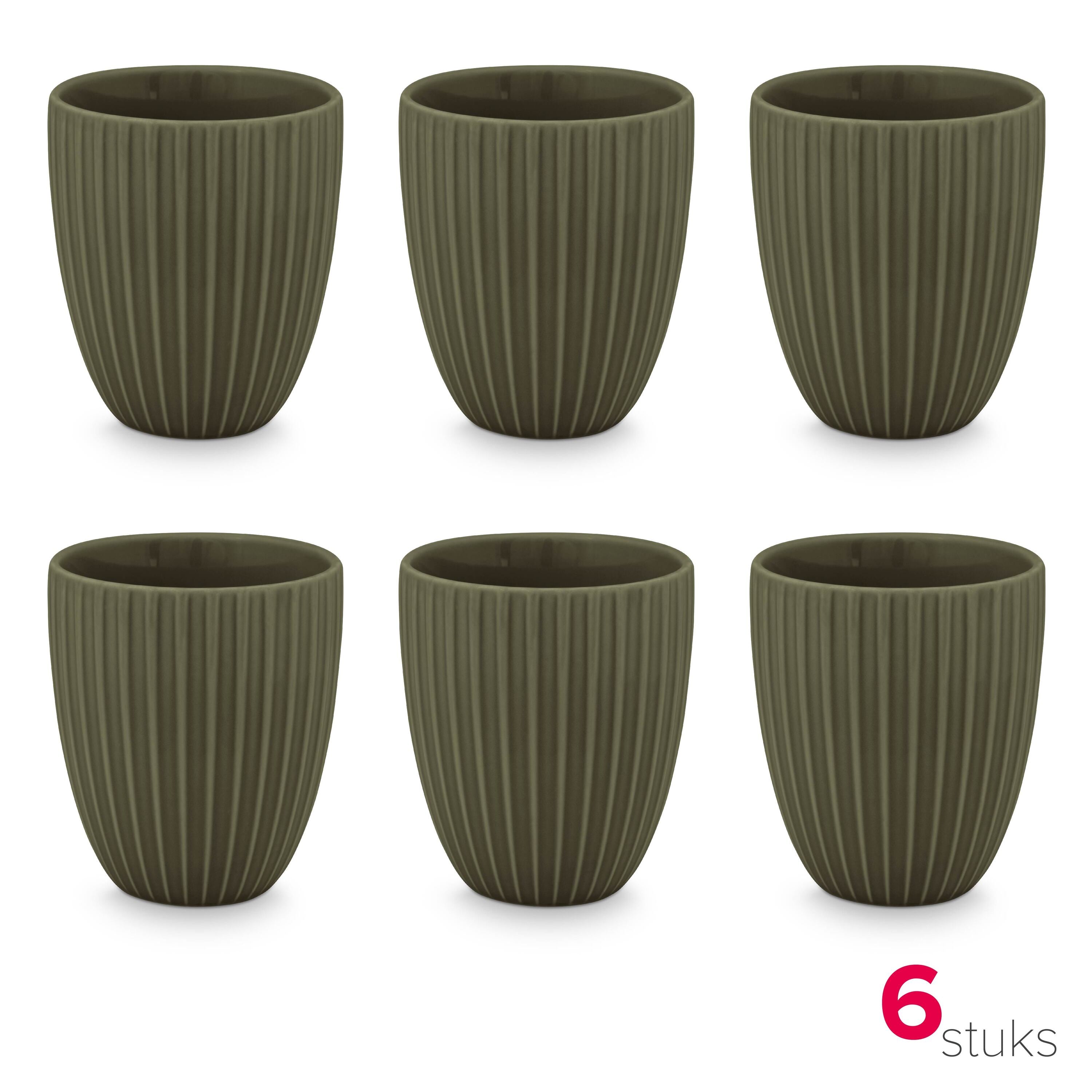 vtwonen Mokken zonder Oor - Set van 6 - Porselein - Groen - 250ml