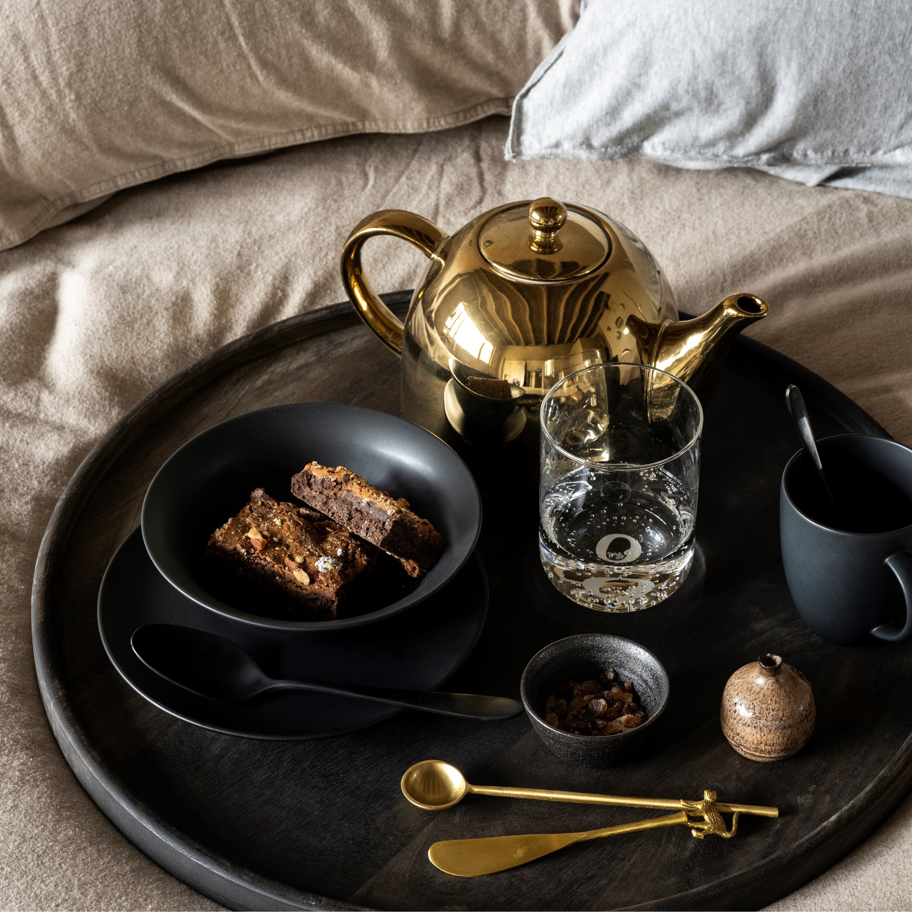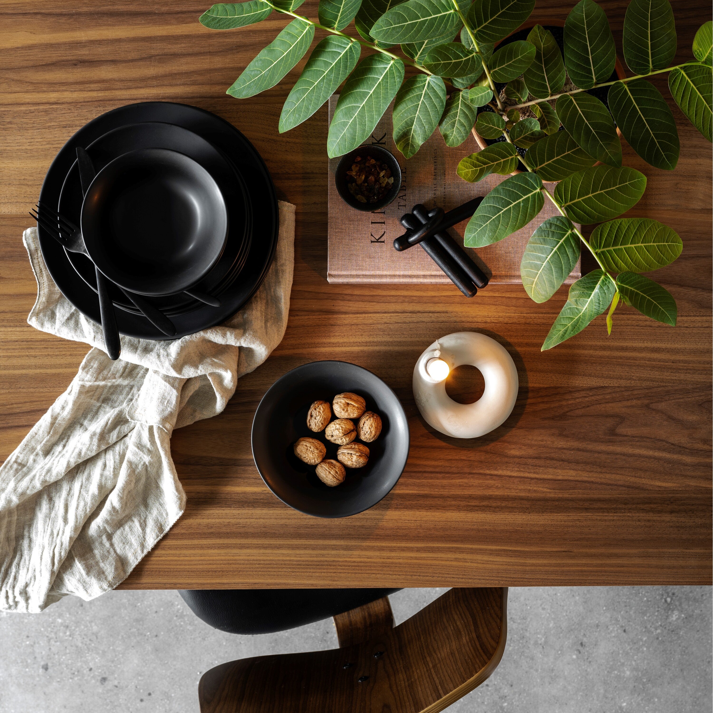 - Gebruikssporen op het servies zijn beter zichtbaar door de mat zwarte afwerking