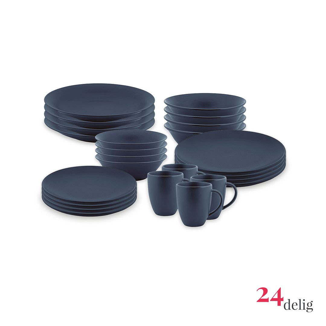 vtwonen Serviesset - Mat Blauw - Porselein - 24-delig
