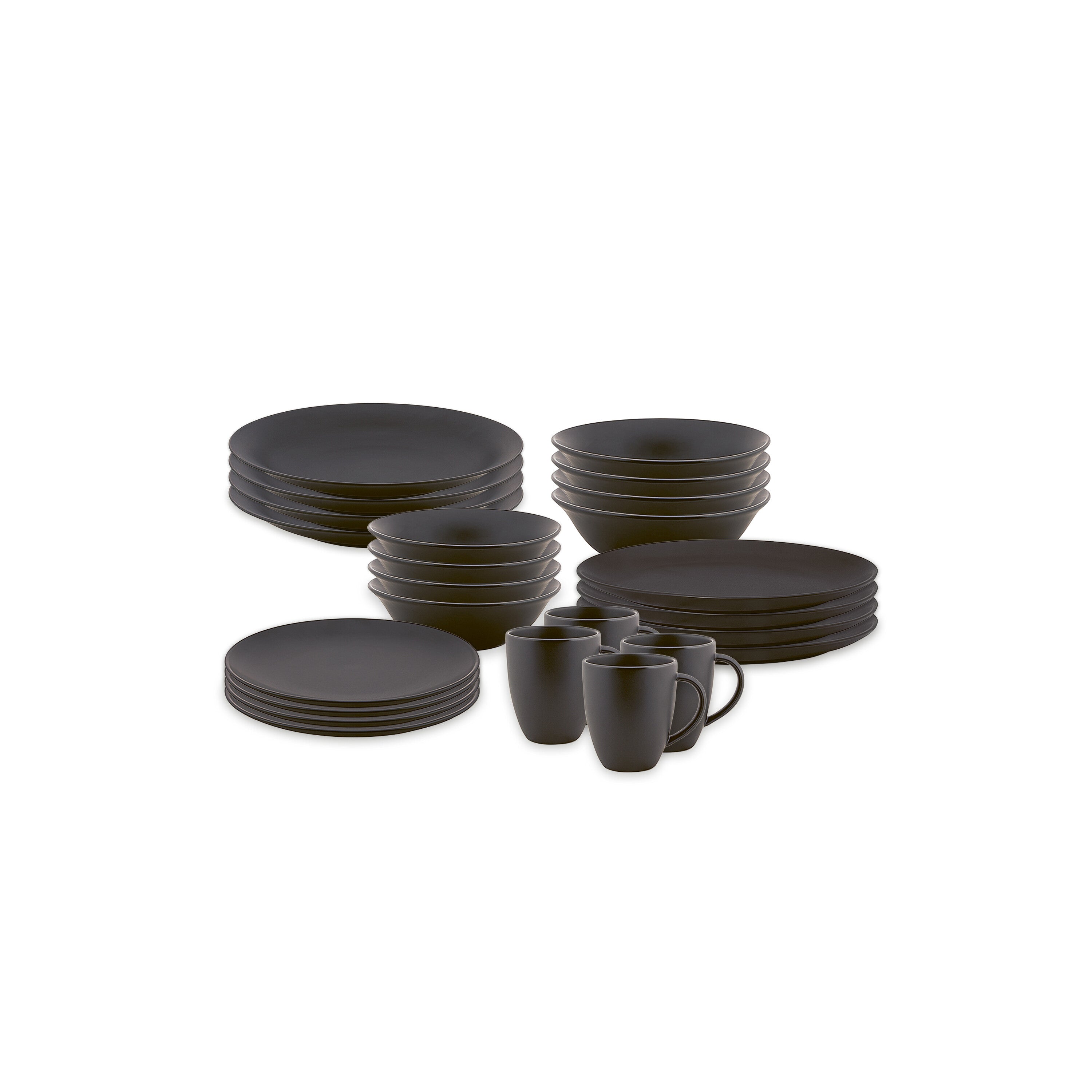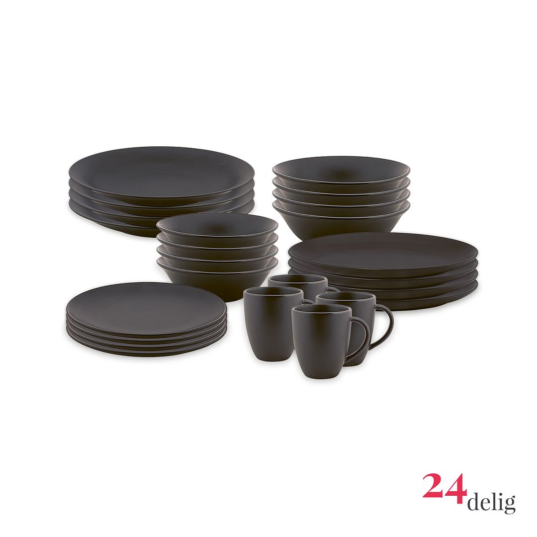 vtwonen Serviesset - Mat Zwart - Porselein - 24-delig