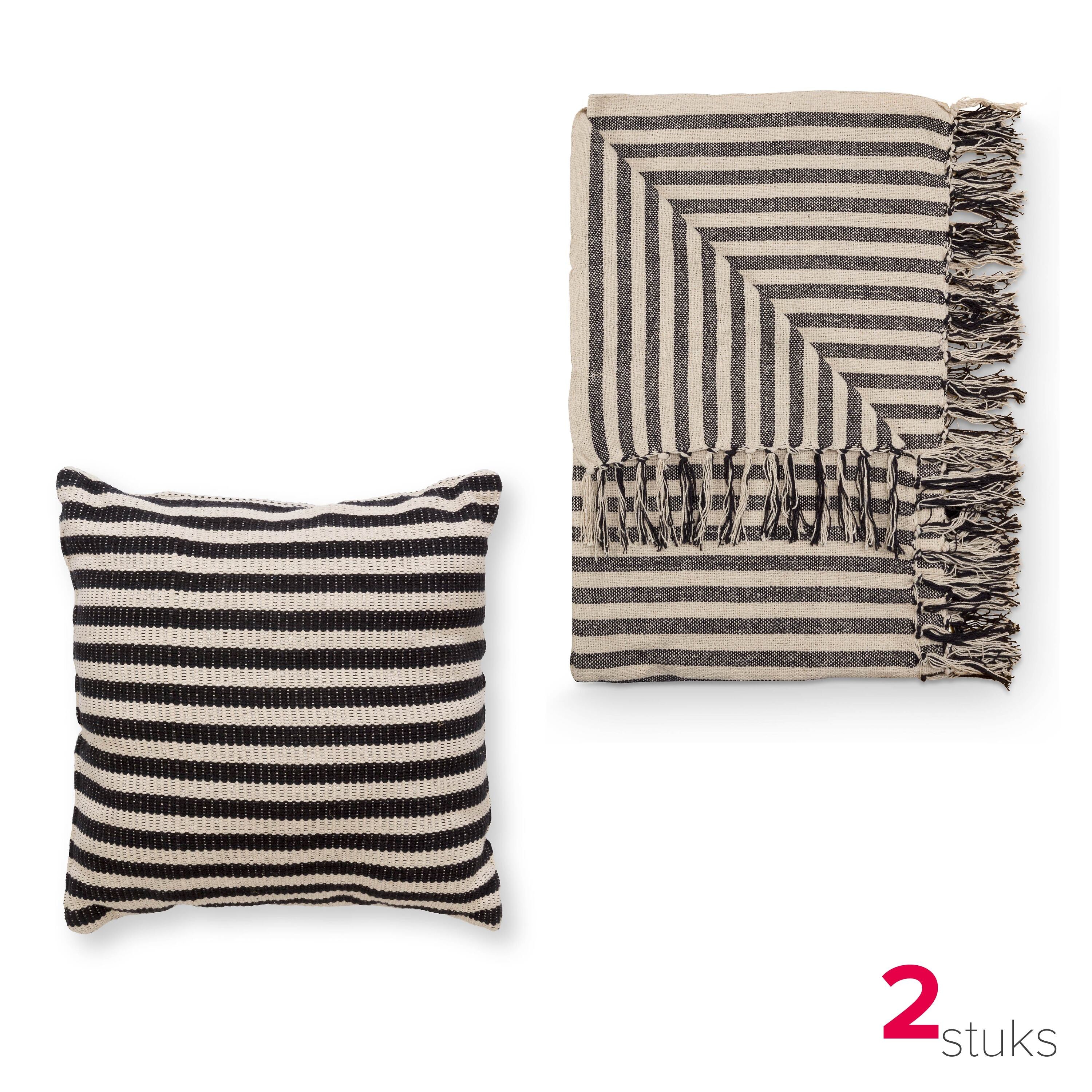 - Deze zwart/witte set bestaat uit een sierkussen (50x50cm) en 1 kleed (130x170cm)