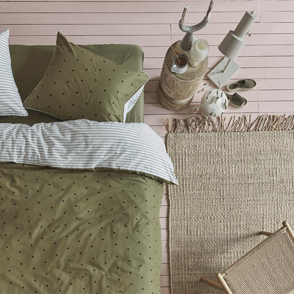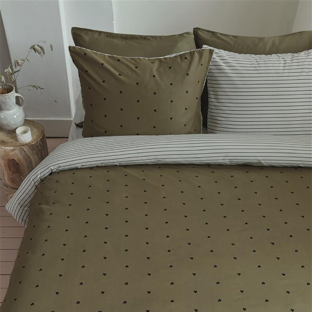 vtwonen Striped Hearts Dekbedovertrek 240 x 200/220 cm - Groen