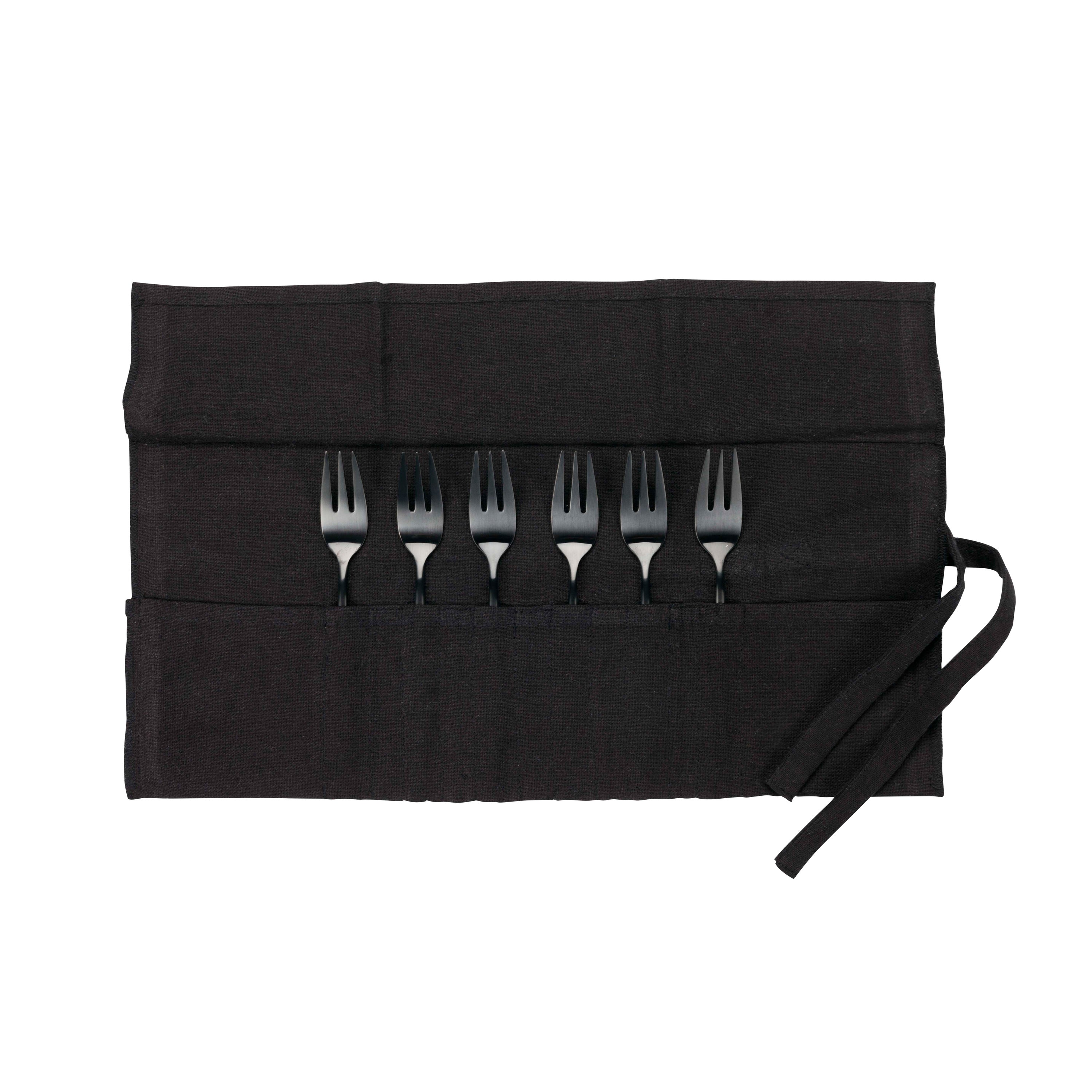 - Set van 6 taartvorkjes in een linnen doek