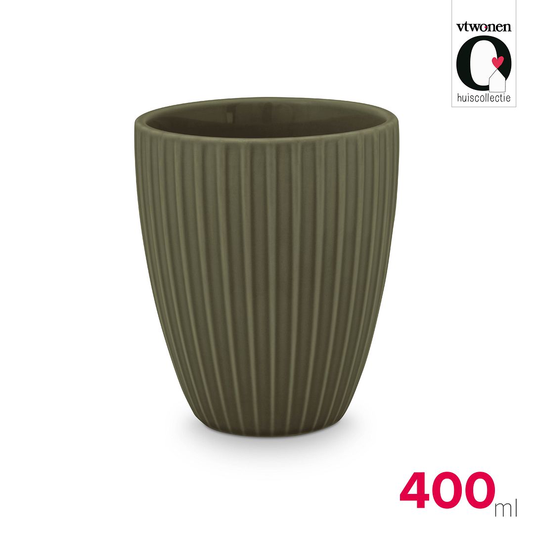 vtwonen XL Mokken zonder Oor - Set van 4 - Porselein - Groen - 400ml