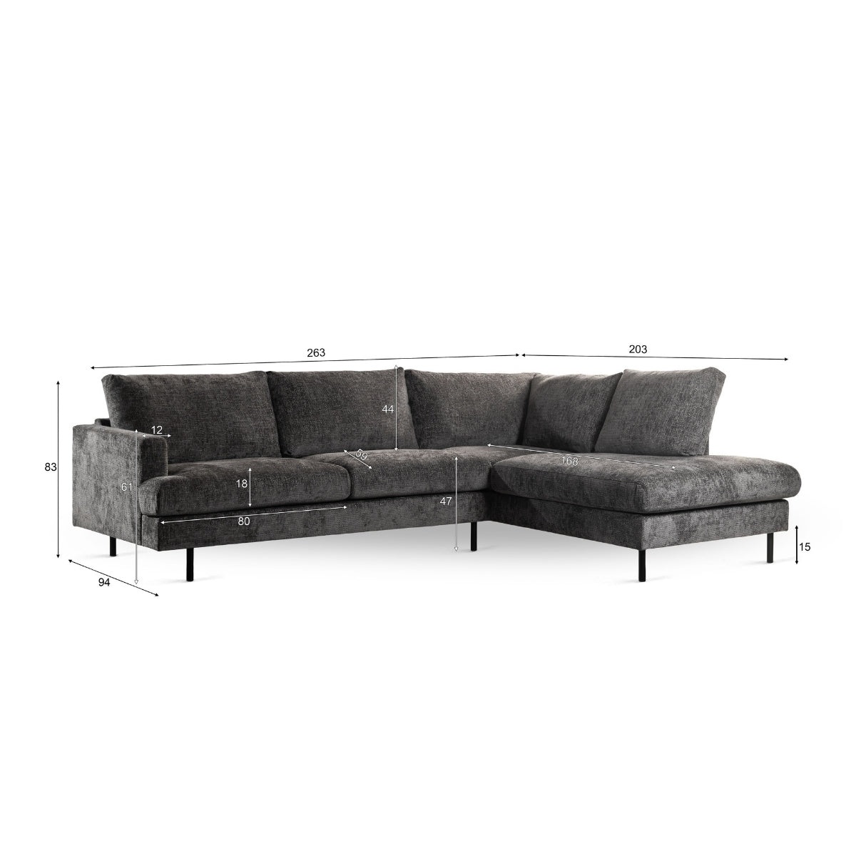 Vurna Marissa 3-zits hoekbank rechts stof - antraciet
