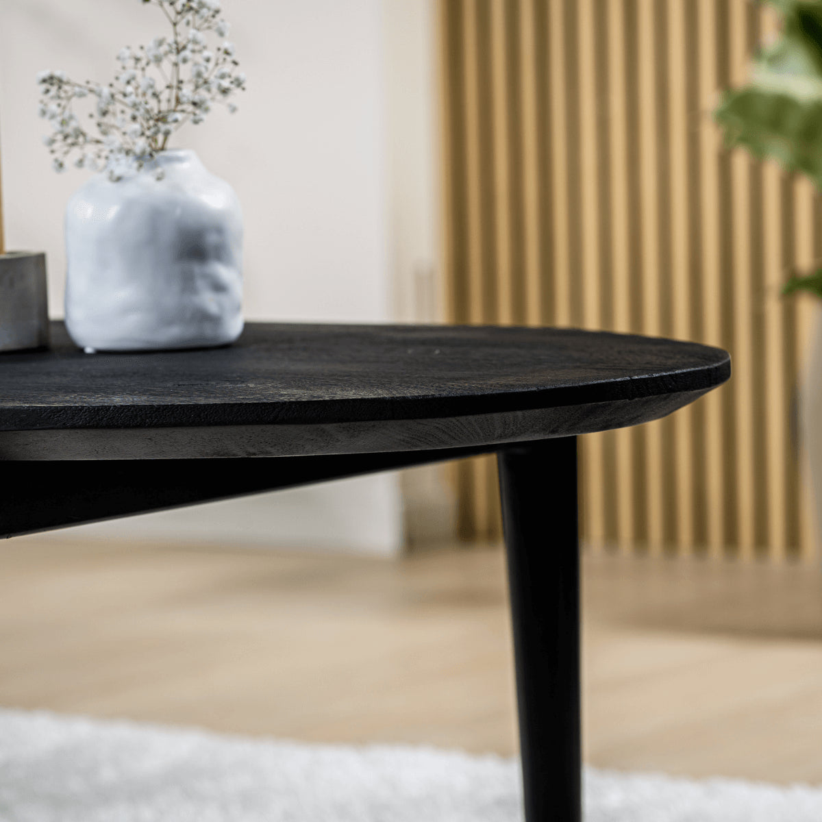 De Milan ovale salontafel van Vurna is een prachtige toevoeging aan jouw woonkamer. Met zijn moderne uitstraling en sterke basis van mangohout is deze salontafel een ware eyecatcher. De tafel is uitgevoerd in een diepzwarte kleur die zorgt voor een stijlvolle en moderne look. Het gebruik van mangohout maakt de tafel niet alleen duurzaam, maar ook uniek. Doordat mangohout een natuurlijk product is, heeft elk meubelstuk zijn eigen unieke tekening en uitstraling. Met een afmeting van 120x60cm biedt de tafel voldoende ruimte om jouw hapjes en drankjes op te serveren. Of je nu een feestje geeft of gewoon lekker op de bank hangt, de Milan ovale salontafel is een handige en praktische aanvulling op jouw interieur. Door zijn ovale vorm past hij bovendien gemakkelijk in elke woonkamer. Het onderstel van de tafel bestaat uit vier zwarte poten die op een speelse manier zijn vormgegeven. Dit zorgt voor een eigentijdse uitstraling die goed past bij een modern of landelijk interieur. Door het gebruik van zwart krijgt de tafel bovendien een stoere en robuuste uitstraling. De Milan ovale salontafel is niet alleen geschikt als salontafel, maar kan ook dienst doen als bijzettafel. Zet hem naast je favoriete fauteuil of bank en je hebt altijd een handige plek om je drankje of boek neer te zetten. Door zijn duurzame materialen en tijdloze uitstraling is deze tafel een investering voor de toekomst. Milan is verkrijgbaar in verschillende uitvoeringen, kijk hiervoor op onze website.