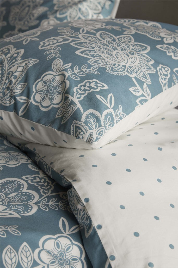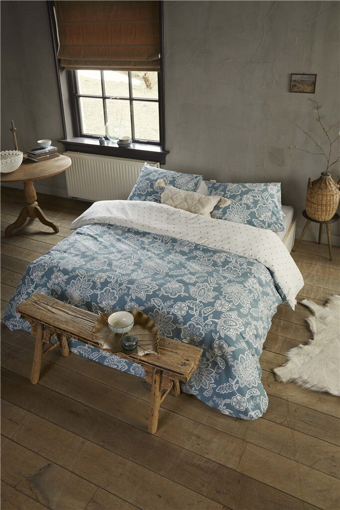 Het dekbedovertrek Country Love heeft aan de voorzijde een Engels bloemenpatroon en aan de achterzijde stipjes op een witte ondergrond. Het is een echte eyecatcher en zorgt voor een romantische sfeer in de slaapkamer. De achterzijde van het overtrek met kleine stipjes geven een speelse look.