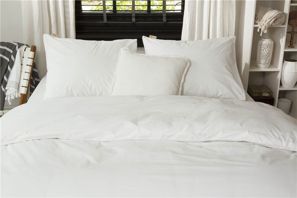 De perfecte combinatie! Het effen overtrek Pretty Pom Pom in de frisse witte kleur met een piping van subtiele bolletjes zorgt er voor dat jouw slaapkamer een rustige maar elegante uitstraling krijgt. Het overtrek is geïnspireerd op de trend Naturel Beauty en zal door zijn eenvoud zonder enige moeite blenden in iedere slaapkamer. Het soepele percale katoen omhult je met een héérlijk zacht gevoel, meer heb je niet nodig! Alles op een rij: