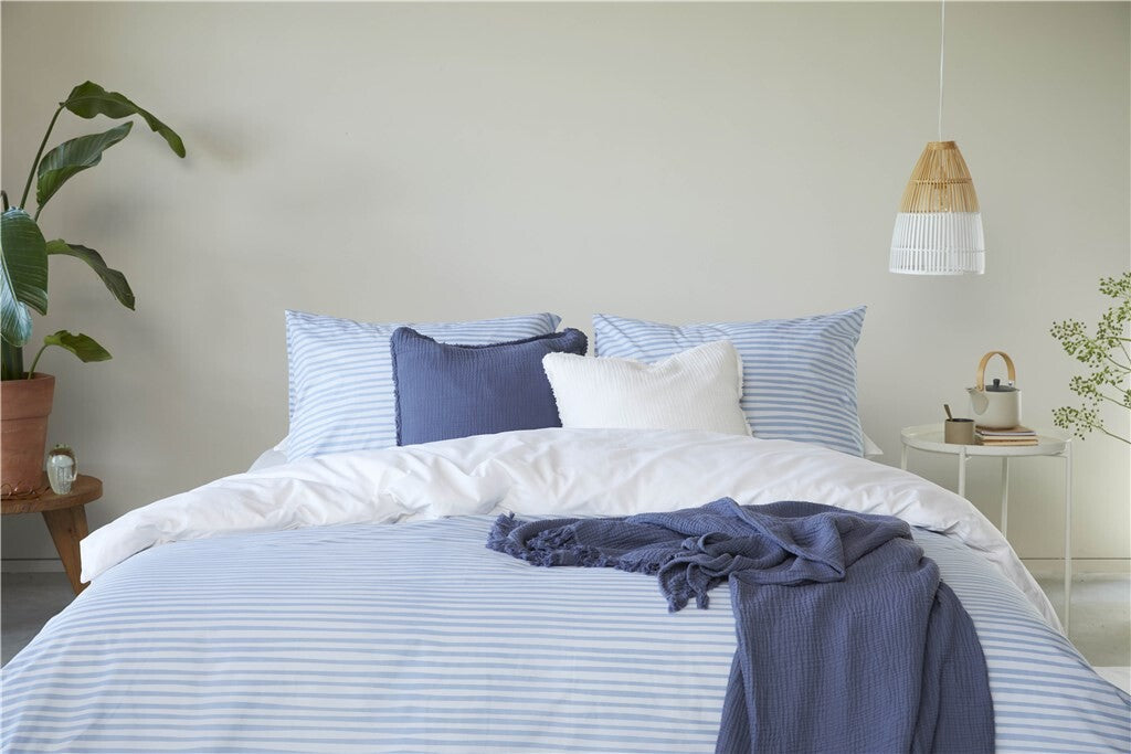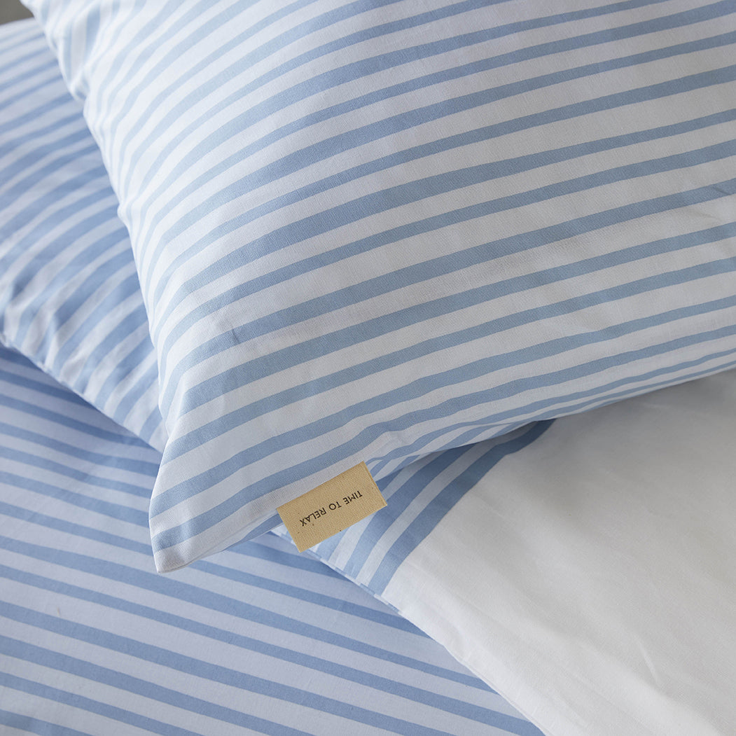 Geef jouw slaapkamer een stoere uitstraling met het overtrek Remade Blurred Feelings. De handgetekende blauwe en lichtblauwe streepjes gecombineerd met een brede witte baan aan de bovenkant van het overtrek zorgt voor een rustig maar speels effect.