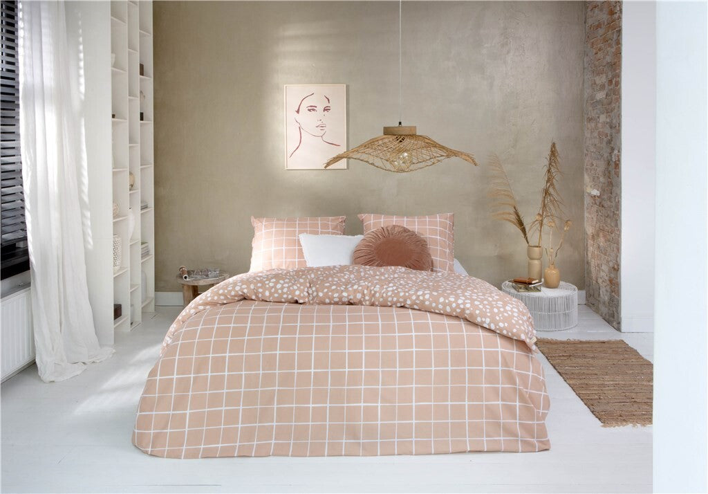 Het overtrek is verkrijgbaar in de trendkleur terra en komt prachtig naar voren bij naturel tinten. Wil je een ander effect creëren in jouw slaapkamer? Draai het overtrek dan eens om zodat de stippen bovenop liggen voor een totaal ander effect. Het overtrek is gemaakt van 100% katoen, waarvan 70% is gerecycled. Zo draag je ook nog eens een steentje bij aan een duurzamere wereld. Alles op een rij: