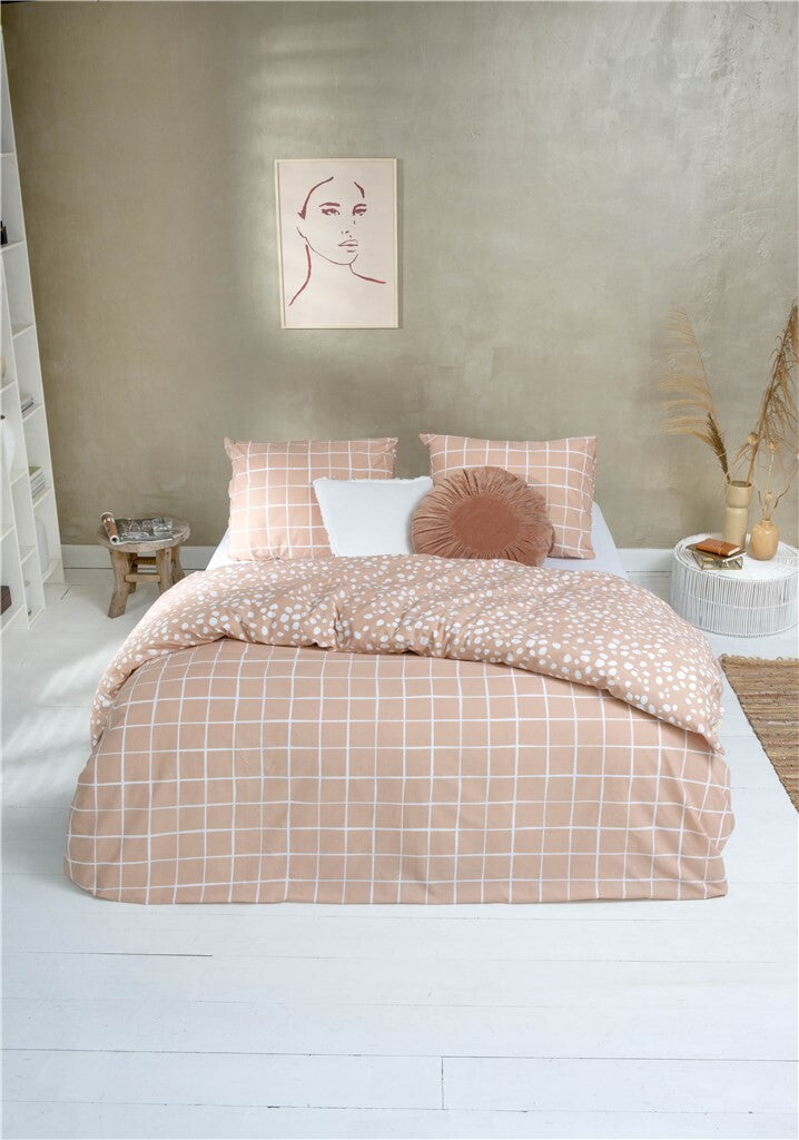 Het dekbedovertrek Remade Dots & Squares is een fijne en speels combinatie. De getekende ruit op de voorkant, en een speelse stip op de achterkant, geven dit overtrek een eigenwijs tintje.